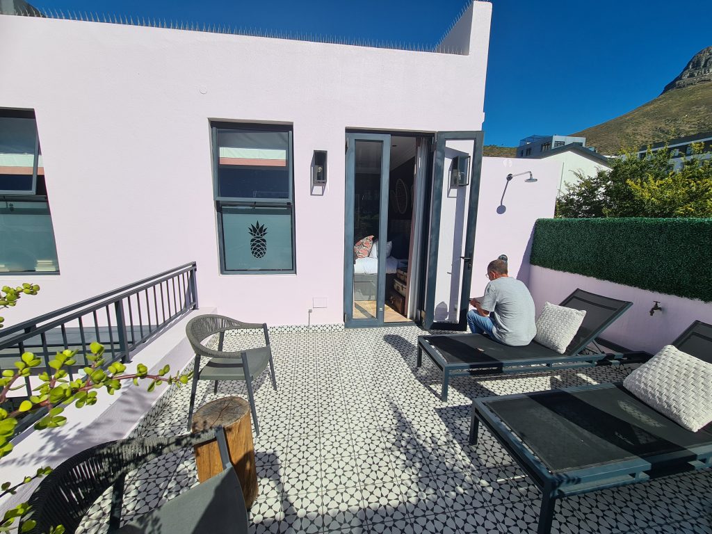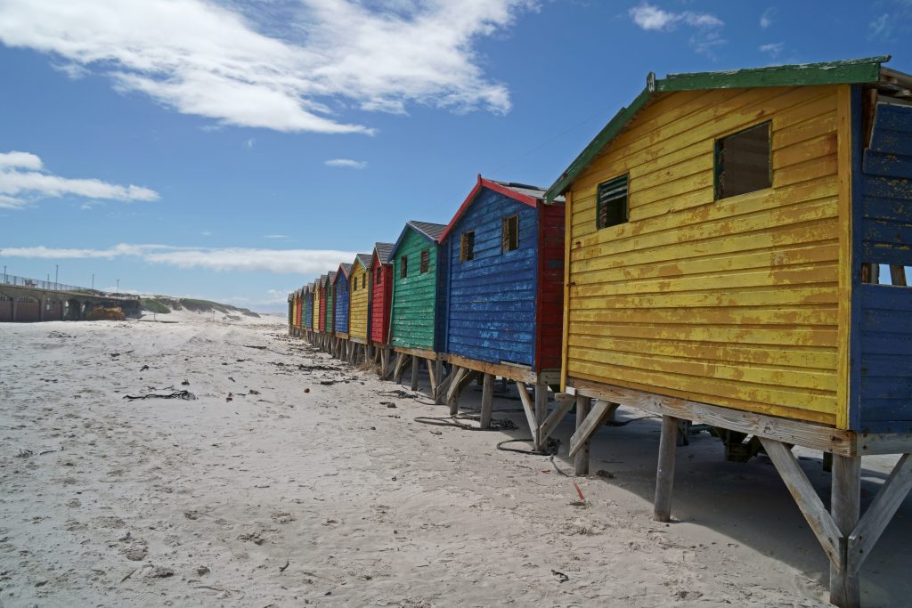 Das Geburtstagsfrühstück ist arg einfach – und wie sollte es sonst sein – und früh angesetzt. Um kurz nach 7 Uhr sind wir schon wieder auf der N2, den Schlüssel zu unserem Häuschen haben wir steckenlassen, mit 369# öffnen sich Indalus Tore auch in der anderen Richtung. Teer und Zivilisation haben uns wieder – 400 km zum Kap der Guten Hoffnung und die Absicht, trotz der wenigen Zeit, die wir noch zur Verfügung haben – doch noch viel von Kapstadt zu sehen, liegen vor uns. Der Muizenberg Beach mit seinen langsam verfallenden bunten Badehäuschen ist unser erster Stopp – malerisch, schön – unseren Pickup parken wir – von jungen Kerl bewacht – direkt dahinter. Er bekommt dafür auch ein kleines Trinkgeld – der Ort ist touristisch, aber schön – die Menschen auf den Straßen tragen wieder coole Sonnenbrillen. In Richtung Kap wird es wieder einsamer, die Landschaft ist karg und unbebaut, aber man merkt unweigerlich, dass jeder, der Kapstadt besucht, auch dieses Ziel anstrebt. 100 Meter vor dem berühmten Schild säumen parkende Autos die Straße, links wie rechts, ein paar Busse mit Reisengruppen dominieren den sandigen Platz. Nun heißt es, sich anzustellen: Jeder will das Foto mit dem Schild „Cape of Good Hope“ oder „Kaap die Goei Hoop“ – in Afrikaans – für sich allein haben. Die Reisegruppen brauchen dafür ihre Zeit, eine Deutschsprechende Führerin beschwert sich lautstark über den Stau, fotografiert uns aber, sodass auch wir zu zweit auf dem Foto zu sehen sind. Dann klettern wir auf den dahinter liegenden, doch recht steilen Hügel und bewundern die spektakuläre Aussicht auf das Meer. Dann geht es wieder hinab, die Busse sind verschwunden, der „große“ Andrang hat sich normalisiert und das berühmte Schild steht uns nunmehr „leichter“ als Fotomotiv zur Verfügung. Über den Chapman’s Peak Drive und vielen Blicken auf tolle Strände geht es dann in Richtung Capetown. Unser vor letztes Domizil ist das Pineapple House Boutique Hotel in Sea Point. Sea Point liegt direkt am Meer, und unser Hotel in einer engen Seitenstraße. Das Parken vor dem Hotel ist gar nicht so einfach, wir wollen direkt vor dem Hotel stehen, es ist eine Einbahnstraße, man kann folglich nicht hin- und herrangieren, wie man will, vor allem wenn ein Auto kommt – aber wir meistern auch dieses Problem trotz unserer 5.30 Meter Länge. Die Hotelbeschäftigten sind extrem jung, extrem freundlich und extrem trendy und smart mit leichtem Dauergrinsen. Man reicht uns das Begrüßungsgetränk, einen Cappuccino, trägt unsere Koffer die steile, enge Treppe in den ersten Stock hinauf – und wir bekommen unser Zimmer erstmals zu Gesicht. Angestellte und Zimmer passen zusammen, es ist modern, irgendwie cool, mit einer Terrasse mit Blick auf den Pool im Erdgeschoss, der Blick vermittelt durch die uns umgebenden hohen Gebäude ein bisschen Staßenschluch-ten- und Großstadtfeeling. Uns gefällt es – die alten Tennisschläger als Dekoration und die Pineapples in den gläsernen Duschwänden passen zum gesamten Stil. Durch das karge Frühstück am Morgen und die Tatsache, dass ja immer noch „Geburtstagstag“ ist, beschäftigen wir uns mit der Dinnerplanung. Ein Rooftoprestaurant in einem Hotel in der Londonstreet gefällt uns gar nicht und wir kehren über die Sea Point Promenade zurück zum Grand Pavilion – einem Restaurant, an dem wir zuvor schon vorbeigegangen waren und das auch in den Hotelhinweisen empfohlen worden war. „Wait to be seated“ gilt natürlich hier – wir bekommen einen schönen Platz so halb an der frischen Luft mit einem etwas zu großen Sonnenschutz, einen guten Rotwein, ein wirklich gutes Essen mit dreierlei Fleischsorten, wobei wir sogar einmal „spinatbedingt umbuchen“ können und einen freundlichen Kellner. Beim Trinkgeldgeben per Kreditkarte lässt er es sich nicht nehmen, uns zu fragen, woher wir kommen, und stellt mit dem „Alles gut“ seine Deutschkenntnisse dann auch noch unter Beweis.