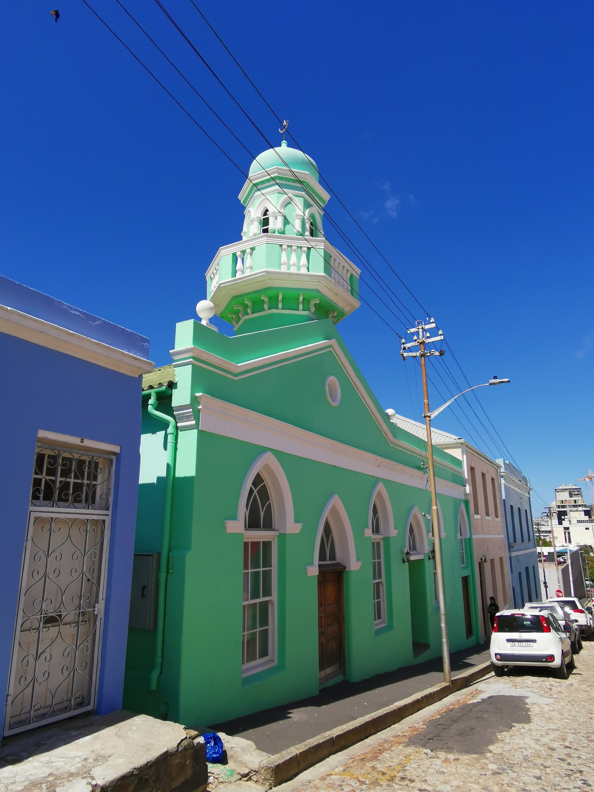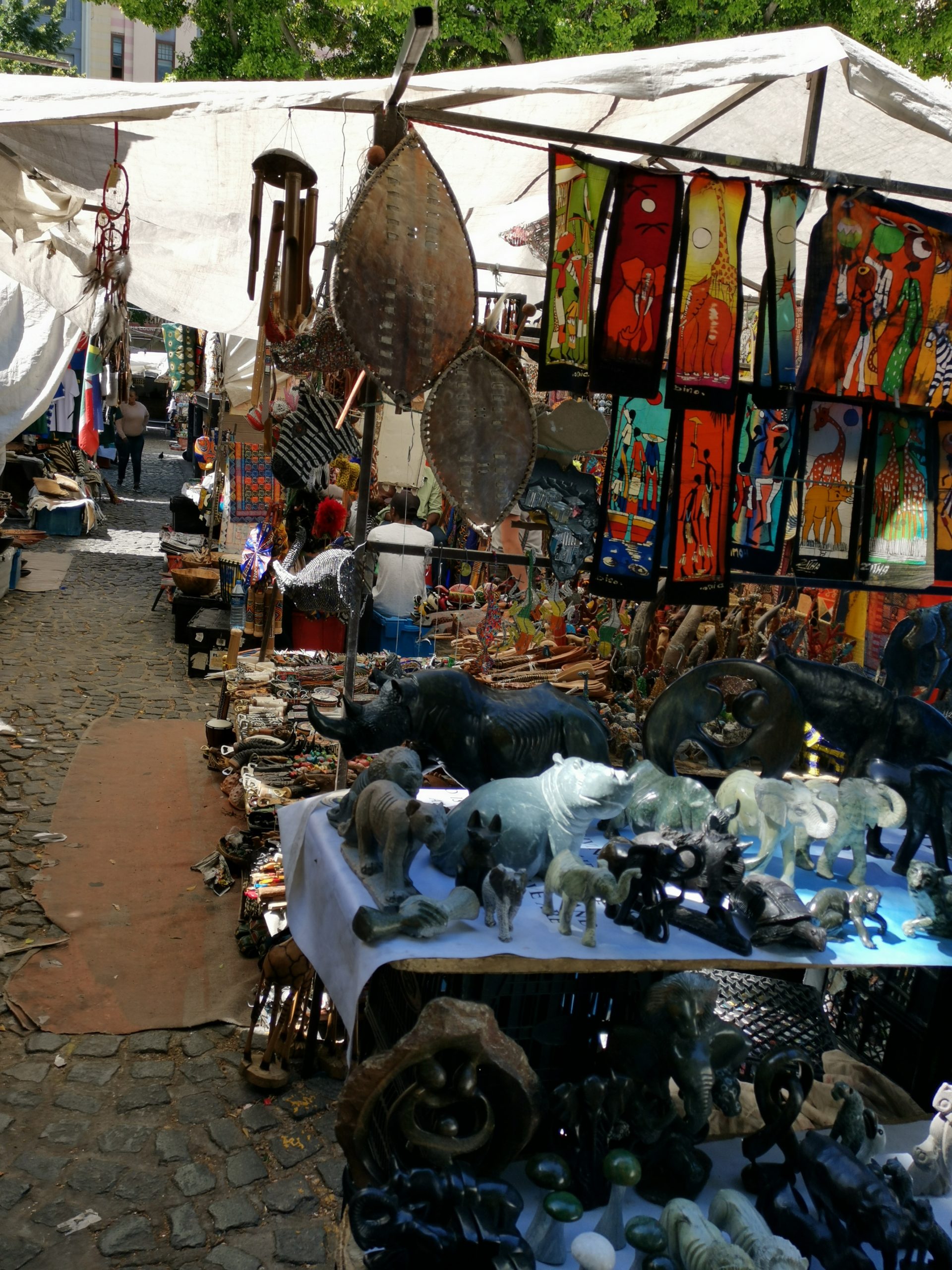 Endlich sind wir zurück an der Waterfront und die Zeit drängt. Was schaffen wir noch in der uns zur Verfügung stehenden knappen Zeit? Wir konzentrieren uns zunächst auf BoKaap mit seinen farbigen Häusern und auf den Greenmarket. Ersteres Ziel ist es wert, der Markt jedoch wirkt beim genauen Hinsehen dann doch wieder so, als ob die angebotenen Souvenirs Teil der besagten Touristikbranche sind. Mit anderen Worten sieht man an jedem Stand im Grunde das Gleiche, der Verdacht auf „Made in China“ lässt einen nicht los. Toll ist, dass unser gefundener Parkplatz für beide Ziele einfach ideal ist. So bleibt uns noch Zeit, auf den Signal Hill zu fahren. Von hier genießen wir nochmals den Blick von oben auf die Stadt, sehen das WM-Fußballstadion in der Entfernung und sind – auch hier – wahrlich nicht allein unterwegs.