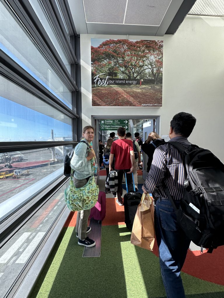 Ein super Frühstück im warmen Wind, ein kurzer Badebesuch im geheizten Pool, der gelungene Ausdruck unserer Einreisepapiere für Mauritius, Valet-Parking ohne Koffertragen – so beginnt der Tag. Wir verlassen das Hotel und …
