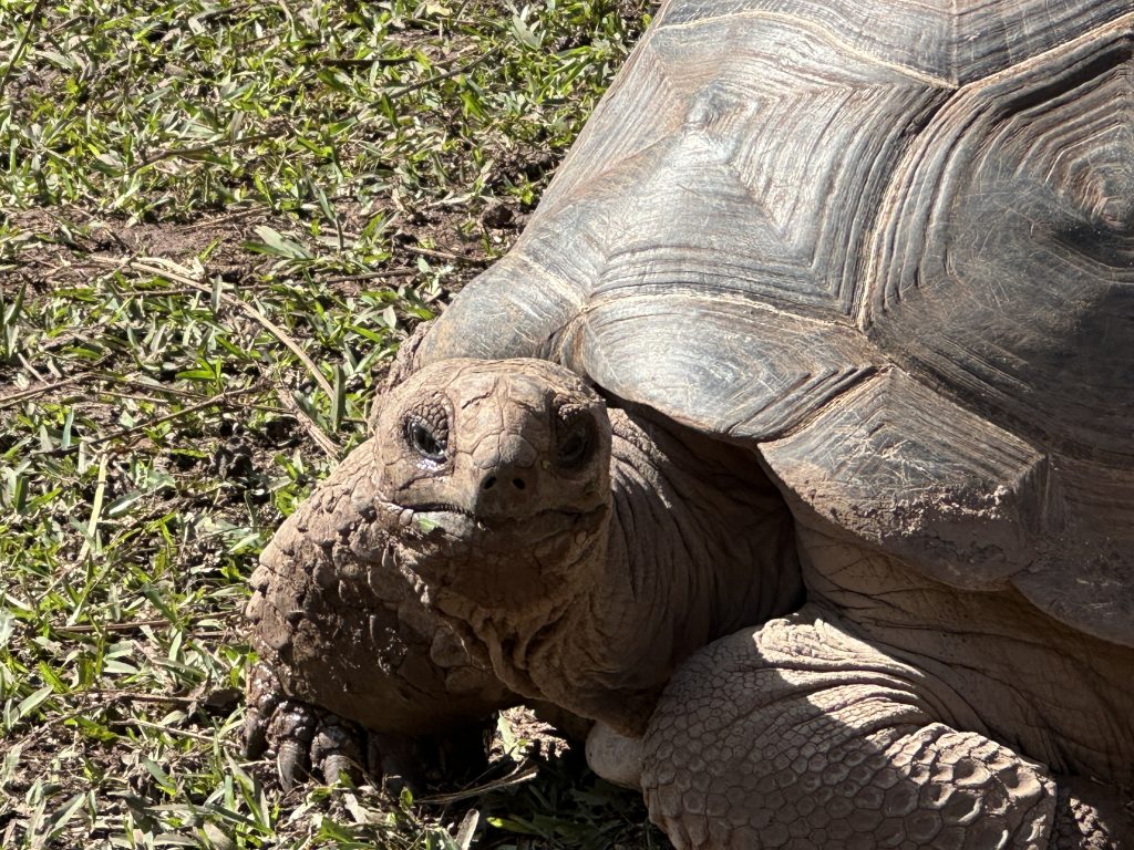Gut geschlafen geht es um 07:45 Uhr zum Frühstück. Wir sind die ersten und wieder sind wir „überzufrieden“. Die Auswahl ist riesig, alles ist friedlich und ruhig, kein Geschirrklappern samt Schlacht am Buffet wie man es ansonsten von Riesenhotels kennt und was uns auf den Malediven und auch in Sri Lanka im Yala missfallen hat. Kurz vor neun Uhr verlassen wir das Paradies Lakaz Chamarel in Richtung Cascades Chamarel samt Seven Earth. Noch ist es dort auch recht friedlich, alles wirkt aber so wie die Ruhe vor dem Touristensturm. So schießen wir unsere Fotos – zuerst vom Wasserfall, und dann auch von den siebenfarbigen Erden, auf französisch Terres des Sept Couleurs, einem Naturphänomen in der Nähe der Ortschaft Chamarel. Diese sind eine der Haupttouristenattraktionen von Mauritius. Die Hügellandschaft ist wie die ganze Insel vulkanischen Ursprungs und die Farben kommen durch die Umwandlung von Basaltlava in Tonminerale und deren weitere Zersetzung zustande. Das ganze Areal ist wie ein Park mit großem Parkplatz, einem Café und einem Shop touristisch extrem erschlossen. Logischerweise sind die Schildkröten – ob klein oder groß = jung oder alt – das „Nebenhighlight“ auf dem Gelände. Dann machen wir uns auf den Weg gen Black River Gorges N. P., stoppen kurz beim gleichnamigen Viewpoint, ehe es dann zu den Alexandra Falls geht. Letztere beeindrucken uns kaum, die seitliche Perspektive haut uns nicht gerade vom Hocker und lässt auch keine „guten“ Fotos zu. Außerdem ist der Parkplatz genauso wie der Viewpoint mit den Verkaufsständen zuvor voller Touristenbusse. Von hier aus starten wir denn unseren nächsten Hike: Cascade 500 Pieds. Anfangs finden wir den Trailhead nicht, entdecken aber beim Weg zurück zum Parkplatz die kleine kaum erkennbare Abzweigung. Anfangs geht es hier recht komfortabel fast ebenerdig dahin, dann wird es matschig und es geht steil und rutschig hinab. Nach wenigen Minuten sehen unsere Füße inkl. Schuhe dementsprechend aus. Irgendwie schaffen wir es – ohne auszurutschen – dann doch bis zum Wasserfall. „We are alone“ – ein Traumblick – ein Wasserfall nur für uns, dessen Wasser – wie der Name schon sagt – senkrecht nach unten stürzt. Die Mühen auf dem Hike hierher sind wie im Flug vergessen, stolz auf unsere Wanderung freuen wir uns, dass wir nicht vorzeitig umgedreht haben und starten sogar erstmals unsere Drohne. Übervorsichtig zwar, nichtsdestotrotz ermöglicht uns unser Fluggerät ein paar Filmsekunden mit Blickwinkeln, die uns ansonsten verborgen geblieben wären. Irgendwann brechen wir dann wieder auf. Gott sei Dank erweist sich der Weg aufwärts – obwohl anstrengender – als angenehmer als der Hinweg. Angesichts unserer recht braunen Füße verschieben wir den geplanten Tempelbesuch auf morgen und kehren frühzeitig ins Hotel zurück. Beim Abendessen gibt es Cocktails – einen Mohito und einen Pina Colada – auf Kosten des Hauses – dank der Mushrooms beim Schweinefleisch.