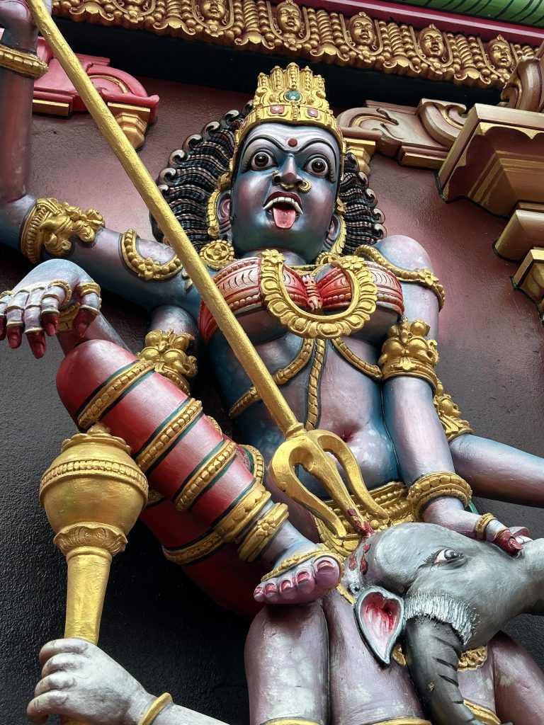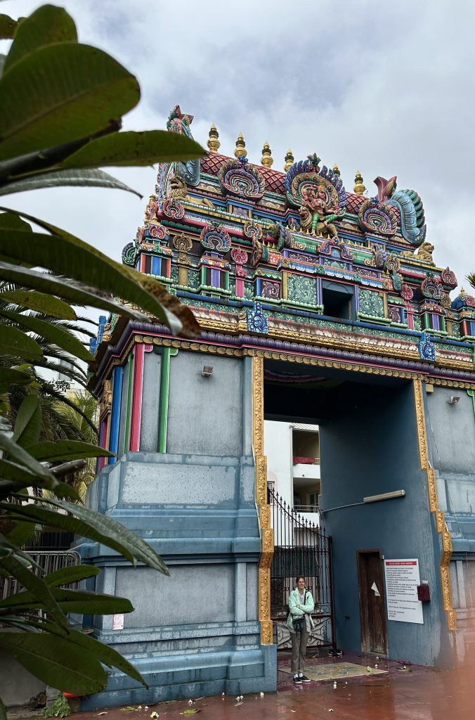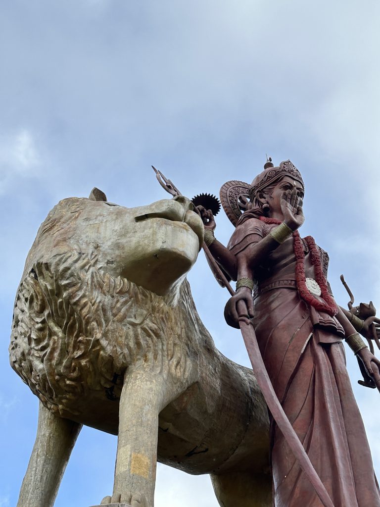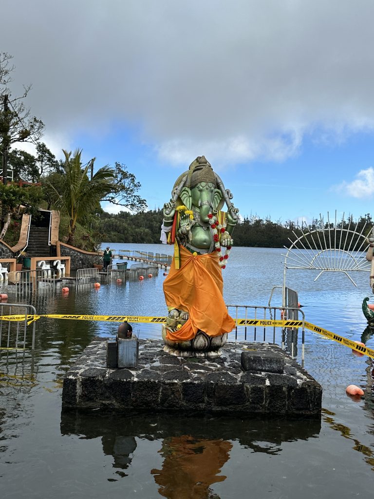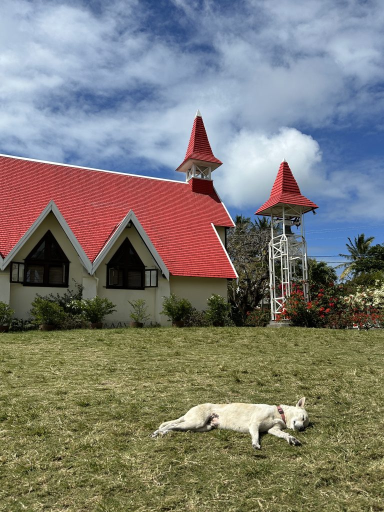 Nach dem erneut vorzüglichen Frühstück stehen die Ganga Talao-Tempel auf dem Programm: Die Shiva-Statue, auch bekannt als Mangal Mahadev, ist 33 Meter hoch, direkt gegenüber auf der „Seeseite“ steht die ebenfalls 33 Meter hohe Statue der hinduistischen Göttin Durga. Ganga Taleo gilt als heiligste Pilgerstätte der Hindus, beruhend auf der Legende, dass Shiva Gangeswasser verschüttet haben soll, das diesen (Krater-) See gebildet hat. Dementsprechend verehren Hindus diese Stätte und bringen mit den Füßen im Wasser den hier am Uferrand stehenden Götterfiguren ihre Opfergaben dar. Trotz der beeindruckenden Höhe der beiden Figuren – inmitten eines riesengroßen Parkplatzes – wirkt alles irgendwie sonderbar auf. Religiöse Anmut verspüren wir vielleicht noch am See, bei den Figuren fühlt man sich eher wie auf einem Supermarktplatz. Anschließend geht es zum ersten Mal zum Tanken. Wir tanken 40 Liter für knapp 2400 Rupien. Dann machen wir uns auf den Weg zum Cap Malheureux im Norden von Mauritius. Die dort stehende schlichte kleine Kirche Notre Dame Auxiliatrice mit ihrem leuchtend roten Dach ist eine der meistfotografierten Sehenswürdigkeiten der Insel. Leider begegnet uns dieses Highlight als überlaufener Touristenhotspot. Mit anderen Worten ist die Hölle los, die „rauchenden“ Grillstationen samt Sitzangeboten direkt neben der Kirche sind „proppevoll“. Den Parkplatz knapp 100 Meter nach der Kirche ergattern wir eher zufällig, von der Vorstellung einer idyllischen Kirche am Meeresufer ist die Tagesrealität weit entfernt. Sicherlich trägt auch die Uhrzeit – es ist Mittag – dazu bei bei. Andererseits haben wir mit unseren beiden Hotels im Süden im Grunde gar keine Möglichkeit, früher hier zu sein. Dass hier die Ausrichtung auf den Massentourismus ausgeprägter zu sein scheint, war uns zuvor schon in Grand Baie aufgefallen. So entscheiden wir uns entlang der Ostküste „langsam“ den Heimweg anzutreten. Der Tempel Sagar Shiv Mandir auf einer Mangroveninsel bleibt hier unser einziger Stopp auf dem Weg bis nach Mahébourg. Zwar lässt der Tourismus – je weiter nach Süden man kommt – merklich nach, allerdings wird auch das Meer unattraktiver und in dem einen oder anderen Ort stinkt es furchtbar nach faulen Eiern. Außerdem beginnt es zu regnen und die seit Malheureux reduzierte Begeisterung für unseren Trip heute sinkt weiter. Gegen 16 Uhr erreichen wir endlich – sichtlich genervt – unser Hotel. Unabhängig davon ist von der Vorfreude auf Réunion mit dem damit verbundenen „Aufgeben“ dieses paradiesischen Hotels samt Reisestress mit Pünktlich-am-Flughafen-Sein und rechtzeitiger Autorückgabe noch nichts zu spüren. Vielleicht hätten wir hier einen Tag länger bleiben sollen. Das Wetter passt sich dieser Missstimmung nun auch an. Besagter Regen hat nun auch unser Hotel erreicht. Erfreulich ist, dass wir beim 2. Aufenthalt auf Mauritius nicht mehr zum Cap müssen und dass wir nun um die Erfahrung reicher sind, dass so lange Fahrstrecken einfach „nerven“.