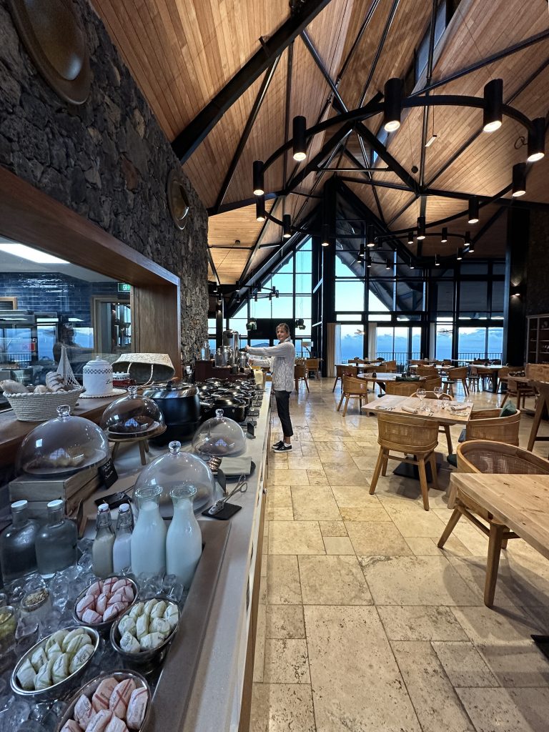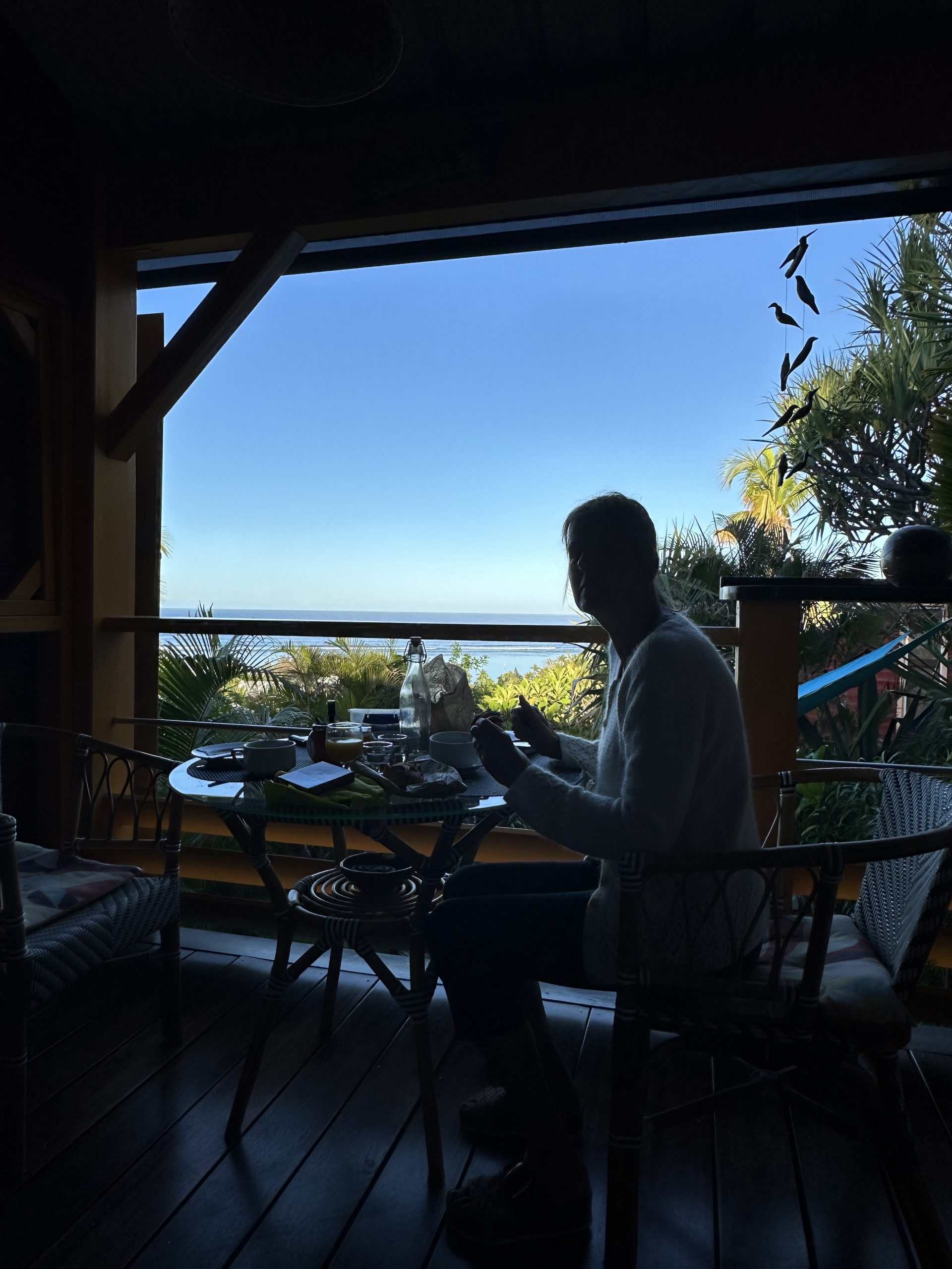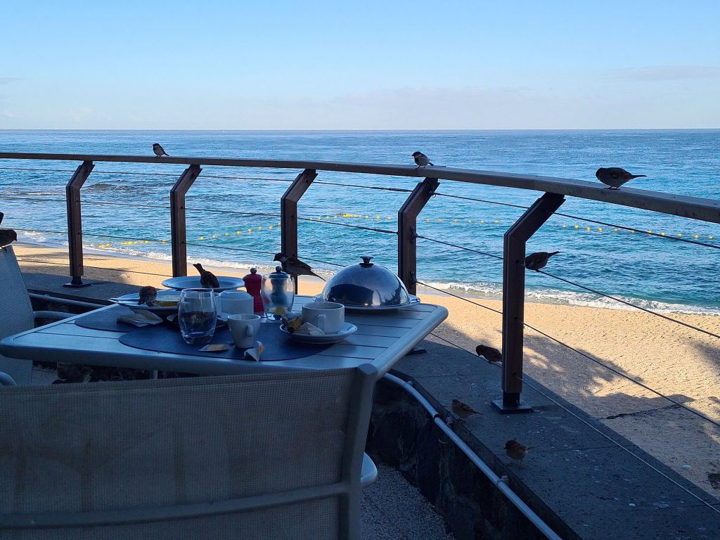 Nach dem Morgenspaziergang mit Drohne geht es ein letztes Mal zum Frühstücken. Den Vormittag verbringen wir – außer mit Kofferpacken – mit Nichtstun…
