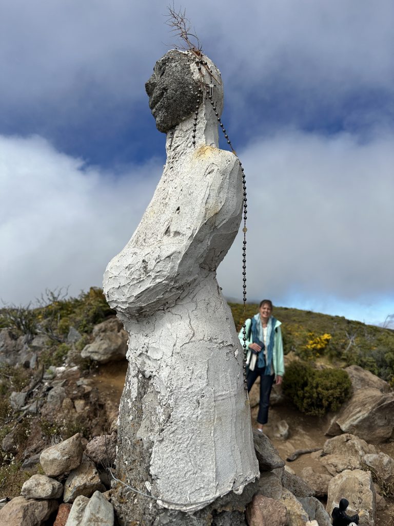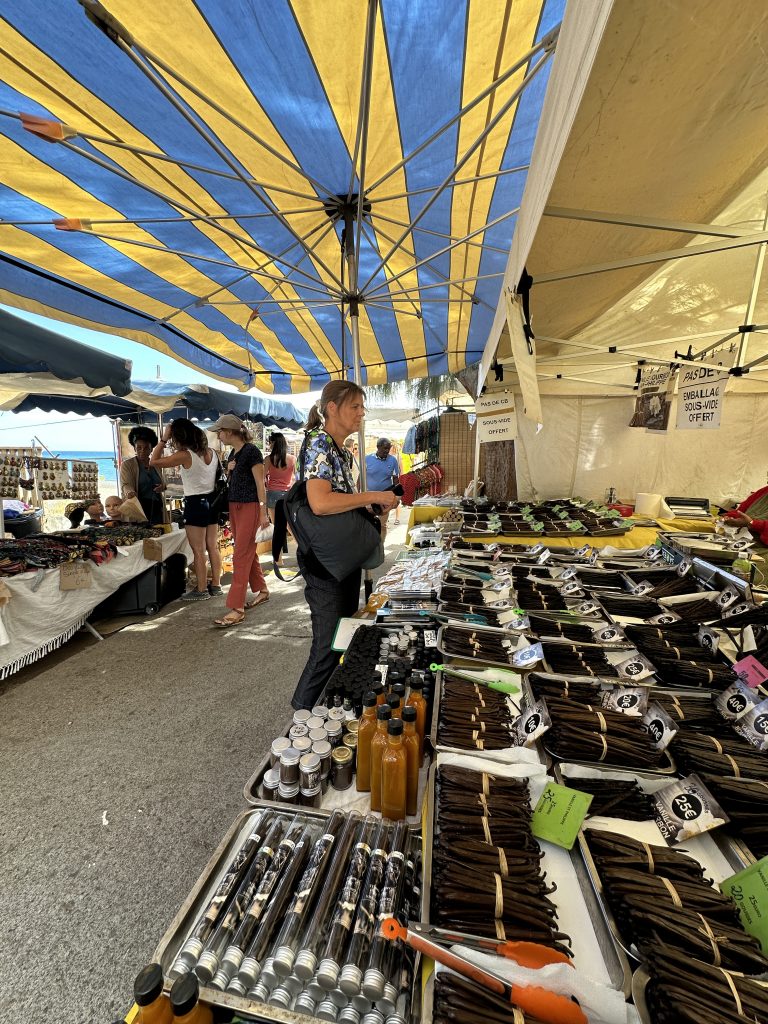 Pascal bringt das Frühstück um 07:20 Uhr, einen Fruchtsalat, ein halbes Baguette, vier Stück homemade cakes und zwei Gläser homemade, recht saueren Jogurt. Kurz nach 8 Uhr brechen wir gen Maïdo auf, das wir nach geschätzt 5000 Kurven gegen 9:30 Uhr erreichen. Hier ist schon viel los, herumgehende Touristen mit ihren Handys in der Hand, Autos den Straßenrand säumend – und wir finden mit etwas Glück auch einen Parkplatz. Der Maïdo ist ein Vulkangipfel auf der Insel Réunion, der oberhalb der Stadt Saint Paul liegt und den „Cirque de Mafate“ überblickt. Die Straße, die von Saint Paul nach Maïdo hinaufführt, führt durch einen Wald aus Hochlandtamarinden, der trotz der niedrigen Temperaturen ein beliebtes Gebiet für Familienpicknicks ist. Eigentlich ist die Rundumsicht fantastisch, nicht nur auf die Dörfer im Cirque, sondern auch auf die Küstenseite, von der wir ja im Grunde von 0 Höhenmeter kommend auf 2200 Meter hochgefahren sind. Blue sky, 11 Grad – aber eindeutig zu viele Touristen, die entlang der Zäune am Abgrund sich fast drängeln, um den besten Blick nach unten bzw. Spot zum Fotografieren zu ergattern. Mehr oder weder zufällig entdecken wir „rechts“ einen kleinen nicht beschilderten Weg, der entlang des Kammes zu einem Aussichtspunkt führt. Aus der Ferne wirkt er zunächst zwar wie ein Handymast, je näher wir kommen erweist er sich als ca. 1,5 Meter hohe, einfache Madonnafigur mit gerichteten Blick auf den Cirque de Mafate vielleicht nur einen Meter vor dem Abgrund stehend. Auf jeden Fall gelingt es uns so, den Massen zu entkommen. Auf einer Übersichtstafel in der Nähe unseres Parkplatzes können wir dann „nachträglich“ auch den Namen unseres überraschend „eingeworfenen“ Ziels – Virgin – entnehmen, was ja zu einer Madonnadarstellung besser passt als zum fälschlicherweise vermuteten Handymasten. Langsam geht es dann die 5000 Kurven wieder nach unten in Richtung Saint Paul. Ein Großteil der Geschäfte ist – da Christi Himmelfahrt – zwar zu, auf der Straße direkt am Meer findet jedoch ein recht großer vielbesuchter Markt statt, den auch wir uns nicht entgehen lassen wollen. Eine ideale Parklücke ist schnell gefunden und so schlendern wir durch die Stände, auf denen neben Essen, Obst und Gemüse, Gewürze, Souvenirs und Kleidung alles Mögliche angeboten wird. Auf jeden Fall rührt sich hier einiges, wir ergattern ein paar Vanilleschoten für unsere Nachbarn, wandern den 100 Meter vom Markt entfernten Steg hinaus und kehren dann auch schon wieder zum Auto zurück. Nach einem Kurzstopp in einem Supermarkt geht es zurück nach la Saline des Bains in unser Poz Lagon. Hier sitzen wir seitdem auf unserem Balkon und genießen die Ruhe – ohne von Pascal – wie insgeheim befürchtet – nach dem Tagesablauf befragt zu werden. Abends erfreuen wir uns wieder unseres Jacuzzis und des anschließenden Baguettes mit Schinken samt einem Bordeauxwein.