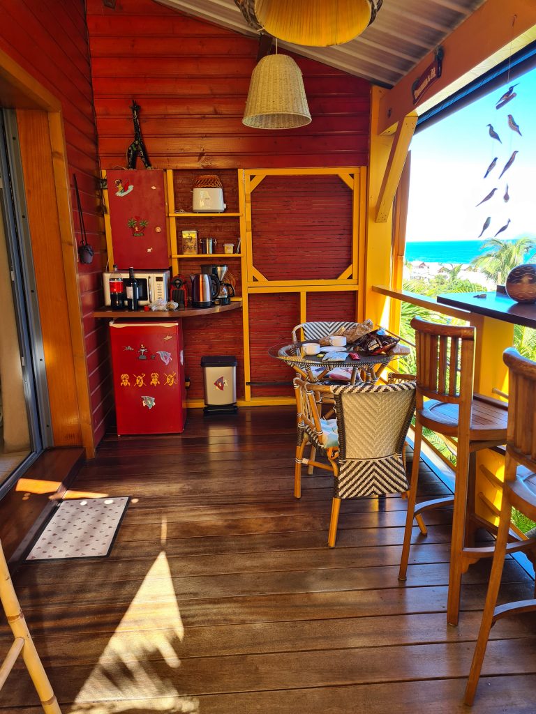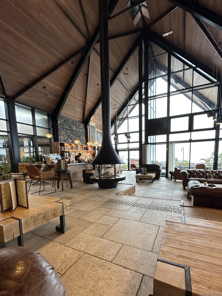 Wir frühstücken im Frühstücksraum um die Ecke eher „sparsam“. So verlassen wir L’enclos ohne Vulkanexperience und sind heilfroh, dass wir eine Nacht schon von zuhause aus gecancelt hatten …