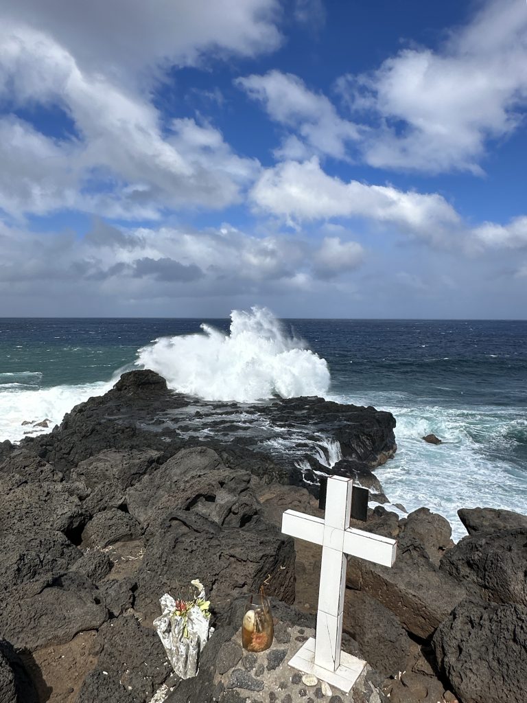 Leaving Poz Lagon fällt uns schwer. Zu angenehm waren die letzten vier Tage. Extremste Freundlichkeit und gleichzeitige angenehmste Zurückhaltung – so trifft es wohl am besten, wenn man Pascal als Gastgeber beschreiben will. Wir haben uns hier sehr sehr wohl gefühlt. Eigentlich sind wir bei Bed & Breakfasts eher vorsichtig, weil wir keinen „Familienanschluss“ wollen, hier bleibt als Resümee nur Positives. Das Bezahlen über Paypal – was für Pascal besser gewesen wäre – hat leider nicht funktioniert, immer wieder wiederholt sich, dass wir den per SMS erhaltenen Sicherheitscode eingeben müssen. We don’t know why – und bezahlen per Kreditkarte. Gegen 9:30 Uhr brechen wir auf, wehmütig und mit einem Gastgeber, der uns beim Blick zurück noch zuwinkt. In dieser Form auch für uns eine neue Erfahrung! Danach klappern wir einzelne „Meeresstellen“ auf dem Weg nach Süden ab, die wir bei Google als sehenswert entdeckt haben. Im Gedächtnis bleibt sicherlich der Point de Chateaux mit den beiden Kreuzen und der meterhohen Brandung. Wer hier ins Wasser fällt, wird dies definitiv nicht überleben. Ähnlich ergeht es einem bei Le Gouffre de l’Etang-Salé, einem vielleicht 75 Meter langen und vielleicht drei Meter breiten Kanal oder Korridor, der von schwarzen Felsen gebildet wird und der sich je nach Wellenrichtung blitzschnell mit Wasser füllt. Nächster Kurzstopp ist der überaus bunte und auch sehenswerte Temple Narassingua Peroumal in Saint Pierre. Mittlerweile hat es zu regnen begonnen, der alte Schlager „Barfuß im Regen“ auf dem Tempelgelände wird hier so für uns real. Auf jeden Fall sind wir – außer einem Mönch – allein vor Ort. Dann steuern wir einen riesigen „Carrefour“ an, holen uns Schinken und Yogurt für die nächsten Tage und auch nochmals eine Flasche Rotwein. Auf der N1 tanken wir für 45 €, bei Sant Louis besorgen wir uns noch ein Baguette, ehe es bei Regen und Nebel hoch nach Cilaos geht. Manchmal ist die kurvenreiche Strecke so schmal, dass man sich wirklich in die Kurve „hineintasten“ muss, um ein entgegenkommendes Auto frühzeitig zu sehen. Angesichts der Witterung „sinkt“ verständlicherweise die Stimmung. Allerdings erreichen wir den Nullpunkt erst, als wir bei der Villa Soalic vor verschlossener Türe stehen, denn das Einchecken ist erst um 15 Uhr möglich. So parken wir irgendwo vor einem kleinen Supermarkt und vertrödeln uns die Zeit. Empfangen werden wir dann zwar freundlich, die übertrieben positiven Internetkommentare bzw. auch die Fotos auf Booking entsprechen aber nicht dem, was wir erwartet haben. Alles wirkt nicht stimmig, Kleinigkeiten in der Ausstattung oder im gesamten Gebäudekomplex zeigen, dass wir hier in aufgerüsteten, besseren Fremdenzimmern untergebracht sind. Angesichts der schon getroffenen, wirklich teuren Entscheidung für Mittwoch bis Freitag „Les Mimosas“ im Grand Bassin zu canceln, verzichten wir auf das erneute Umbuchen und hoffen einfach darauf, dass der Wettergott hier in den Bergen morgen wenigstens stundenweise uns wohl gesonnen ist. Jetzt sitzen wir gerade – es ist schon 17:30 Uhr – vor unserem Zimmerchen in der Kälte, trinken Tee und Kaffee, lesen und schreiben und haben „drinnen“ erstmals in diesem Urlaub die Heizung angestellt.