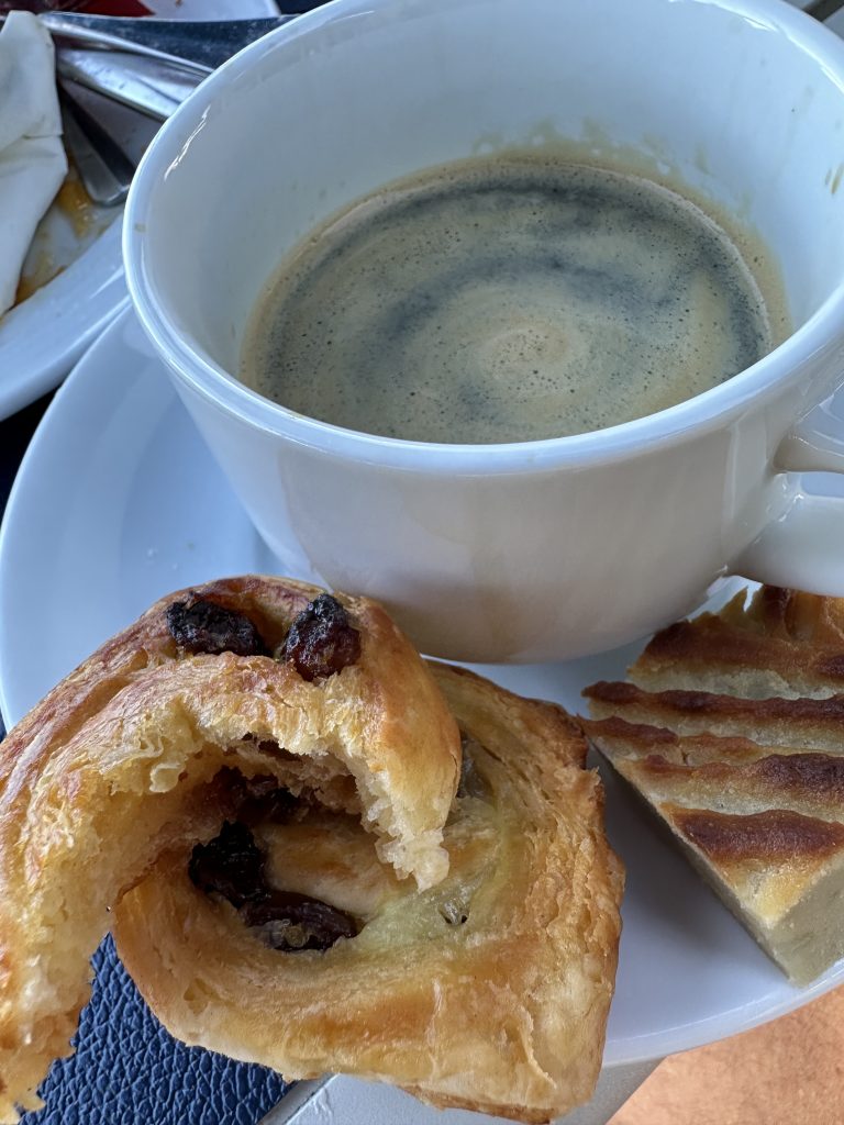 Der Tag beginnt mit Regentropfen und einem etwas sonderbaren Frühstück. Etwas verlassen sitzen wir im Frühstücksraum herum – der Cappuccino passt sich dem an und auch das Brot – und die Entscheidung, nicht zu canceln …