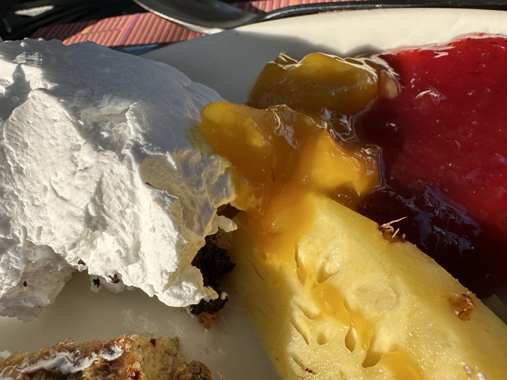 Der zweite „kirchliche“ Hochzeitstag beginnt wie der Vortag. Kaffee, Strandspaziergang und no-flight und anschließendem Buffet erneut mit der weißen Sahnekalorienbombe …