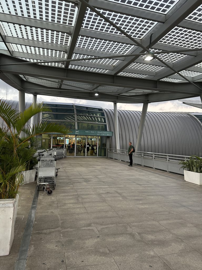 Seit ein paar Minuten sitzen wir nun vielleicht 50 Meter nach B21, direkt am Schalter, alle Sitzplätze sind belegt. Das Gate war zu Fuß erreichbar – ohne Zug oder Bus, aber mit erneuter Handgepäckkontrolle bei der Security. …