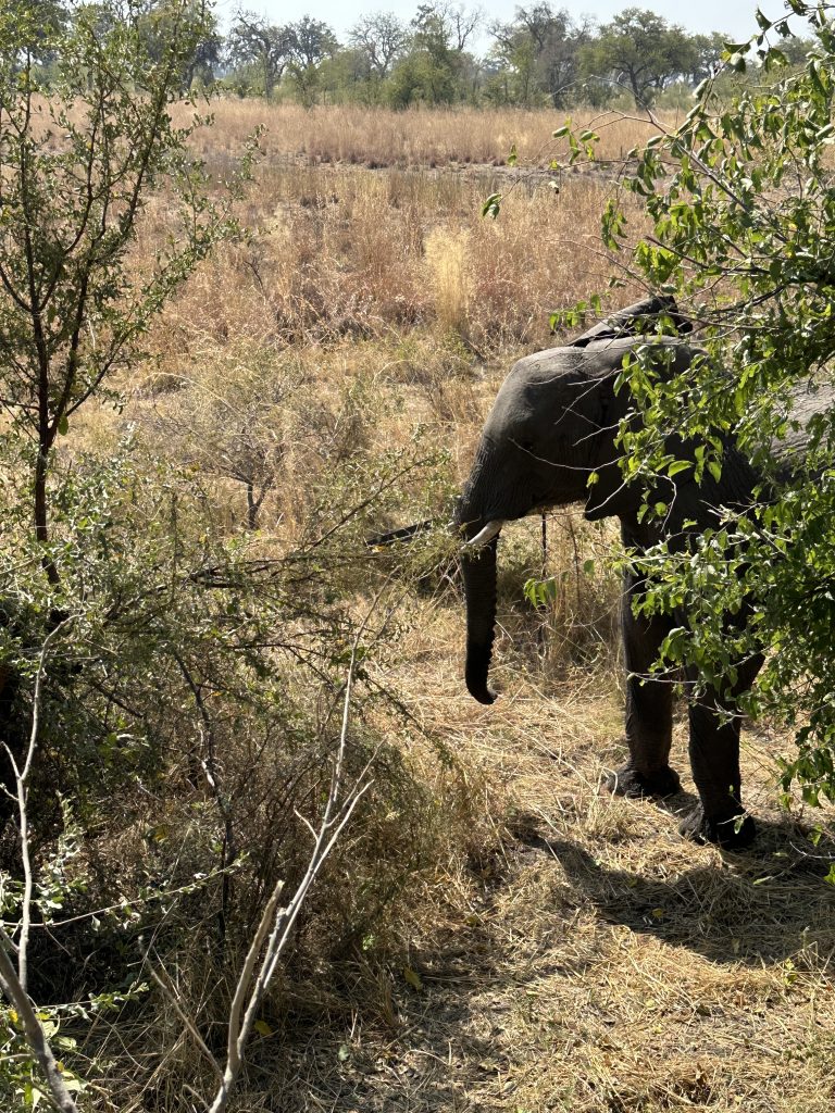 Nach dem tierlosen Morninggamedrive – Highlight ist ausschließlich die grundlose Elefantenverfolgung – …