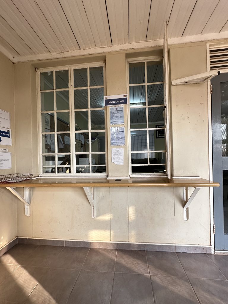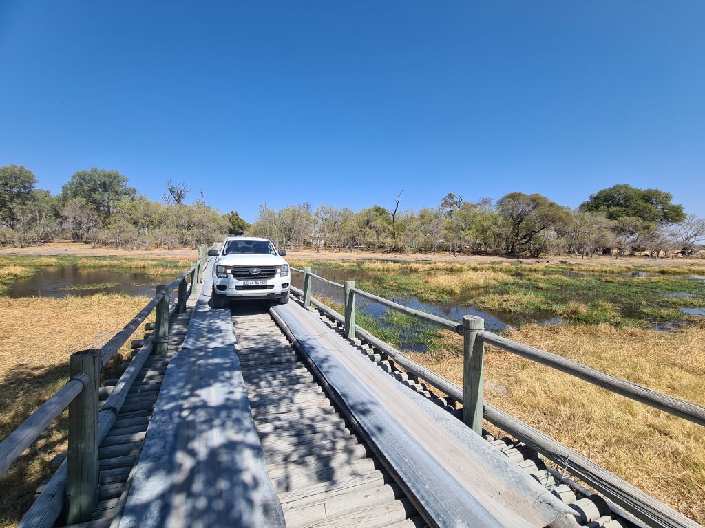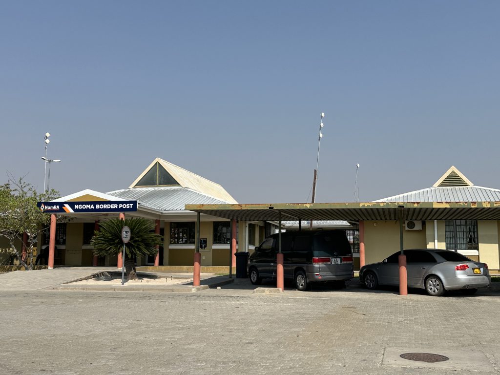 Der Morgen beginnt mit – welch Überraschung – positiv. Man ist freundlich, beim guten Frühstück und sogar an der Rezeption beim Auschecken. So war es eigentlich nur eine einzige Person, die uns diese Lodge und den Aufenthalt vermiest hat. Das Zimmer war super, das Frühstück auch und darüber hinaus besteht sogar die Chance, dass wir die zweite Nacht zurückerstattet bekommen. Dies alles ändert aber nichts an der Tatsache, dass zwei Nächte hier wohl zu viel sind. Das Canceln war also – obwohl aus Ärger über die eine Madame – richtig. Mit dem 9-Uhr-Boot setzen wir wieder über und fahren zunächst einmal in die falsche Richtung, was uns erst an einer Kreuzung, bei der es nicht weitergeht, auffällt. Wir drehen um und steuern die 77 km zur Grenze nach Botswana an. Zuerst geht es ins Namibiagrenzhaus, dann 2,5 km durchs Niemandsland, ehe der Botswanagrenzübergang gemeistert werden muss. Hier treffen wir in der Schlange vor dem Schalterhäuschen sowohl die Schweizer Familie von unserem Bootsshuttle als auch die Germans von Nkasa Lupala, mit denen wir die kombinierte Tour am ersten Tag absolvieren mussten. So „streng“ wie vor 7 Jahren hinsichtlich Schuh- und Autoreifencheck geht es hier nicht mehr vonstatten.