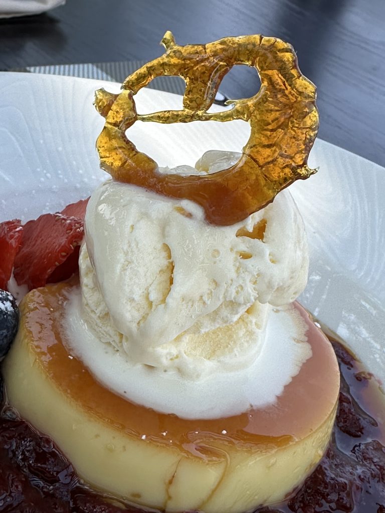 Um 7 Uhr sitzen wir beim Frühstück: Statt Eggs Benedict scrambled eggs, statt Joghurt gibt es fluffy pancakes und …