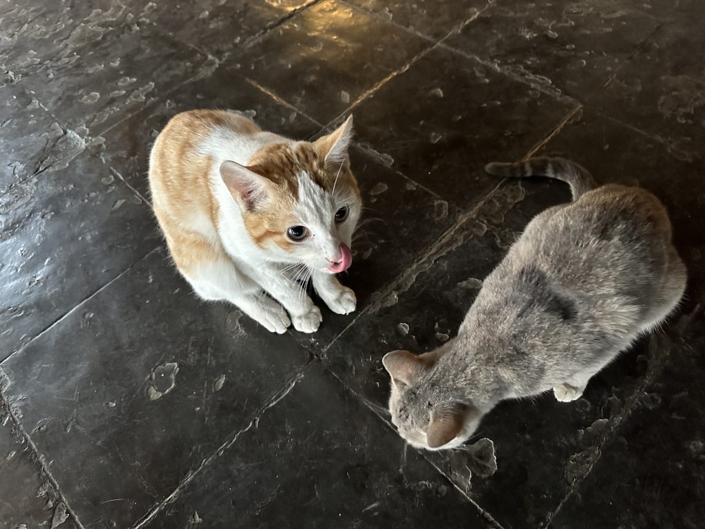 Der Tag des Helikopterflugs beginnt erneut mit den Katzen. Wir ….