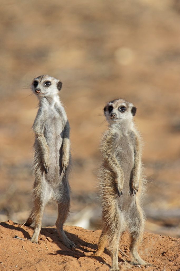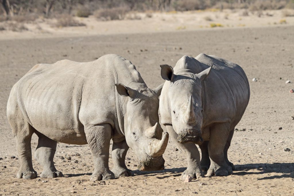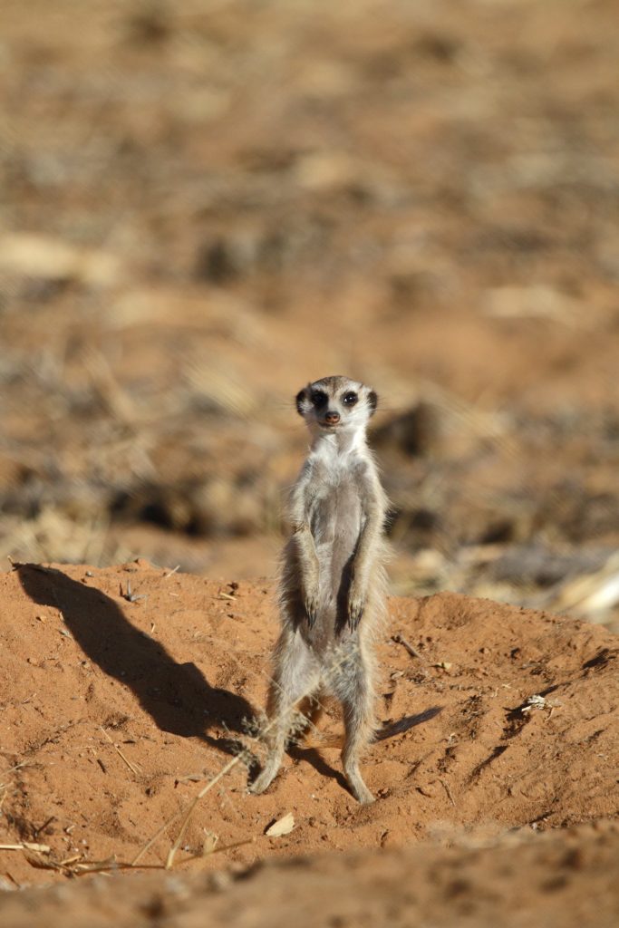 Frühstück um 07:30 Uhr erfolgt mit nachgeholtem Checkin und mit der überraschenden Nachricht, dass ein Reifen einen Platten hat. Lazarus kümmert sich darum und – während wir frühstücken – wird schon der Ersatzreifen montiert. Gegen 9 Uhr machen wir uns – wieder mit Lazarus – auf den Weg, die „Haustiere“ der Lodge zu besuchen: suricates oder meerkat oder Erdmännchen, wie wir sie nennen. Lazarus‘ Bruder erwartet uns schon am Bau. Uns werden für die Beobachtung zwei Campingstühle aufgestellt. So ganz traut uns die Erdmännchenfamilie nicht, denn es zeigen sich im Grunde nur zwei der vier Vertreter. Nur kurz wagt auch ein Elternteil einen Blick auf uns, dann verschwindet es wieder. Nach gut 20 Minuten geht es dann zu den Rhinos, die sich ebenfalls in der Nähe der Lodge aufhalten, da sie von dort auch gefüttert werden. Auffällig nahe kommen wir den drei Vertretern dieser bedrohten Gattung, und ebenso überraschend ist für uns, dass sie, als Lazarus mit der Faust auf die Motorhaube haut, sofort zurückweichen. Das vierte Rhino war keines, sondern nur ein „aufgeblasenes“ Warthog … Wieder zurück in der Lodge sind wir froh, dass wir wirklich late auschecken dürfen. So bleibt uns ausreichend Zeit, die letzten Stunden noch in Ruhe zu genießen, zu duschen bzw. auch nochmals zum Lunch – es gibt Oryxschnitzel mit Kartoffelsalat – zu gehen. Nicht überwinden konnten wir uns, einen Sprung in den Pool zu wagen – das Wasser war einfach zu kalt. Gegen 13:30 Uhr gehen wir dann letztmals nach vorne. Lazarus erhält als Sondergratifikation 50 $ als Rate für seine Kamera, die er bei Anita abstottert und wir kaufen uns nach ein Metallrhino als Souvenir. Kurz nach 14 Uhr verlassen wir dann die Lodge gen Hosea Kutako Airport. Alles Weitere verläuft dann ach Plan. Erwähnenswert ist vielleicht, dass Frankfurt sich von seiner besten Seite zeigt und alle – ob bei der Securitiy oder bei der Passkontrolle – überraschend freundlich sind. So geht ein wunderschöner, sorgenfreier Urlaub dem Ende zu. Schade!