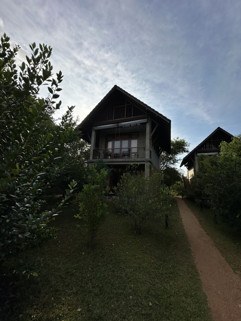 Das Abendessen ist partly Sri Lankan: rice and curry mit viel Reis und vielen Schüsseln voller unterschiedlicher Beilagen und western: grilled chicken with fries. Zwei kleine Katzen unter dem Tisch stoßen dabei fast schon erwartungsgemäß auf unser Interesse, eine davon will partout etwas zum Schnabulieren und bekommt natürlich auch etwas ab. Angesichts der drohenden kurzen Nacht für den Safariausflug am nächsten Morgen liegen wir aber schon wieder früh im Bett.