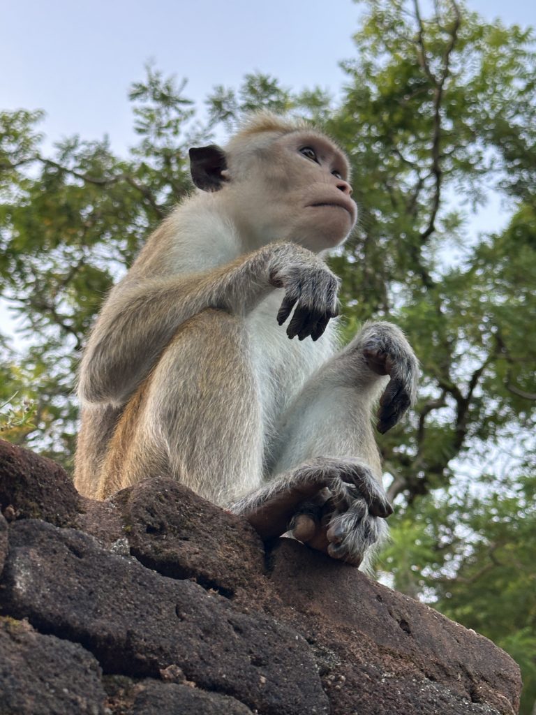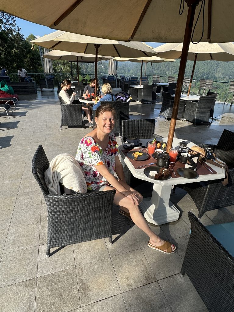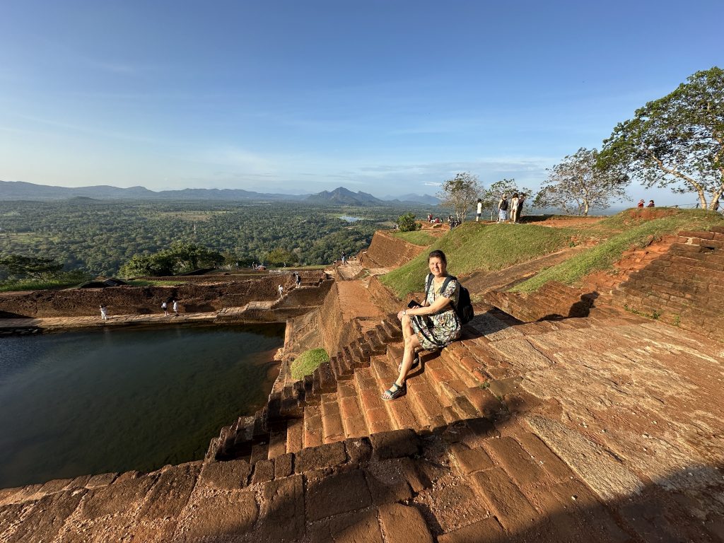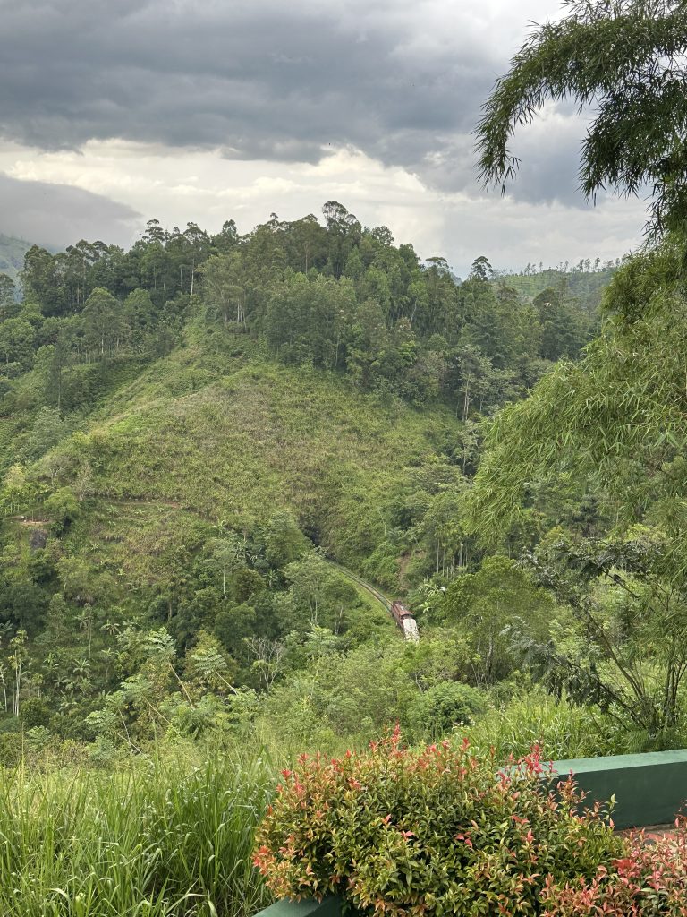 Früh zu Bett und am nächsten Morgen früh auf mit dem ersten „eigenen“ Kaffee im Zimmer: So beginnt der erste ganze Tag in Sri Lanka. Noch bei Dunkelheit verlassen wir mit voll gepacktem Auto und Take-away-Frühstück das Hotel um 5:30 Uhr. 20 Minuten später stehen wir bei Ticketcounter für den Sigiriya-Felsen. Leider benötigt man printed tickets, unser Onlineausdruck reicht nicht und – … system error. So warten wir halt wieder einmal, bis endlich der PC funktioniert. Um 6:15 Uhr geht die Schnauferei mit vielen Stufen und für die Uhrzeit überraschend vielen vielen anderen Touristen los. Auch wenn es anstrengend ist und die eine oder andere Kurzpause erforderlich wird, sind wir 45 Minuten später „on the top“ am summit. Manchmal kommt es beim Hochklettern direkt zum Stau, dass man — manchmal erfreulicherweise — kurz warten muss. Vor allem bei den metallenen Treppen geht es ganz schön eng zu, auch wenn die Stufen in Teilbereichen durch Metallseile für die Hinaufgehenden von denen für die Herabgehenden getrennt sind. Außerdem stoßen wir bei beiden Etappen auf Touristen, die sich zu viel zugemutet haben. Das Wetter ist auf jeden Fall traumhaft und die Sicht super. Einmal oben angekommen ist das Gelände dort in den Ruinen so weitläufig, dass man nicht so „aneinanderklebt“ wie beim Hochsteigen oder beim Herabgehen. Wir halten uns gut zwanzig Minuten auf der „Hochebene“ auf und machen wie immer unsere Fotos. Beim Runtergehen werfen wir natürlich auch noch einen Blick auf die Wolkenmädchen. Von der engen Metallwendeltreppe und der Tatsache, dass man offiziell nicht fotografieren darf, haben wir uns nicht abhalten lassen und schießen heimlich sogar ein Not-allowed-Foto. Leider in mieser Qualität! Um 7:45 Uhr sind wir dann schon wieder am Auto, schneller und früher als erwartet. Über Dambula, Bakamuna, Hettipola, Mahiyanganaya und Badula – hier kaufen wir kurz ein und tanken erstmals – geht es 180 km nach Ella. Unser erster Supermarkt Food City Express verhilft uns zum ersten Coke Zero. Beim Hin- und Herrangieren beim Tanken touchieren wir den Lenker eines kleinen Motorrads. Gott sei Dank bleibt dies folgenlos – keine Kratzer an unserem Auto und ein freundliches Sorry reicht, um das Missgeschick, an dem der Rollerfahrer sicherlich auch mitschuldig war, vergessen machen zu lassen. Die TipTop-Lodge erreichen wir um 13:30 Uhr. Ella zeigt sich regnerisch, very very touristisch und verschreckt uns etwas, die Lodge auch, sie ist zwar OK, vom Ambiente aber steril. Sie erreicht man über einen engen, am Ende steilen Weg und liegt oberhalb der influencerbedingt berühmten Eisenbahnstrecke. Die 9-Arches-Bridge sehen wir aus der Ferne, den Besuch vertagen wir aber auf morgen Früh, in der Hoffnung, dass wir dann leichter einen Parkplatz, der nahe am Trailhead zur Brücke ist, finden bzw. dass das Wetter wieder besser ist. Aktuell sehen wir nur eine weiße Nebelwand. So sitzen wir gerade bei geöffneter Balkontüre im Trockenen und trinken Kaffee und Tee.
