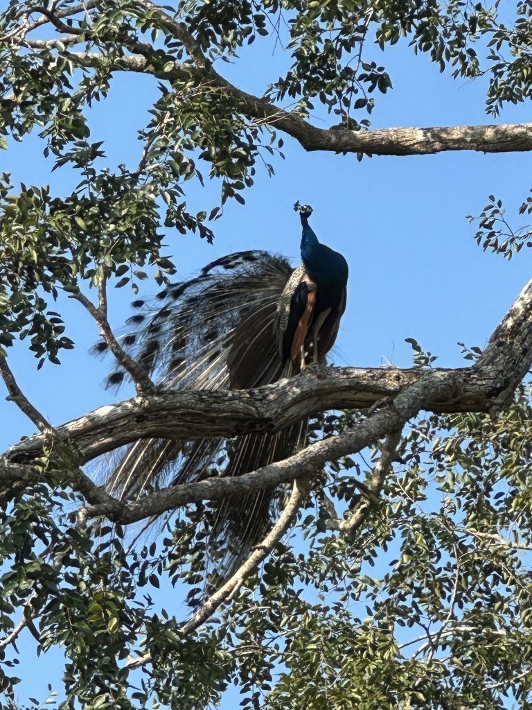 Nach drei Stunden geht es wieder zurück zum Paradise Jungle. Mit 11000 weitere Rupien weniger im Geldbeutel für den Jeep samt Fahrer frühstücken wir schon hungrig geworden nach den drei Stunden an der frischen Luft on the first floor oberhalb der Rezeption. 20 Minuten später machen wir uns auf den Weg gen Yala bzw. Jetwing Yala. Die Fahrt dorthin — ca. 85 km — verläuft bis auf die zwei, drei Elefanten am Nationalparkzaun highlightlos, um 1 Uhr erreichen wir unser erstes großes vornehmes Hotel. Valet parking, kein Kofferschleppen, ein erstmals guter Begrüßungsdrink — so begrüßt uns Jetwing Yala. Zwar müssen wir noch eine halbe Stunde warten, bis das Zimmer fertig ist, das Zimmer ist aber aber picobello und geräumig mit Blick aufs Meer in ca. 150 m Entfernung. Den Luxus genießen wir, wobei man der Gesamtanlage schon anmerkt, dass sie nicht mehr modern und stylisch ist, sondern seine Jahre schon auf dem Buckel hat. Für die arg verschwitzte Jeans samt Hemd nutzen wir den Laundryservice, an der Rezeption buchen wir den zweiten und letzten Safariausflug unseres Urlaubs. Leider ist damit wieder Frühaufstehen angesagt, aber in Yala zu sein, ohne den Nationalpark sich anzusehen, verbietet sich auch von selbst. Den Rest des Nachmittags verbringen wir zuerst am einsamen und verlassenen Strand mit auffällig starker Brandung — inklusive roter Fahne — und dann auf unserem angenehm großen Balkon. Mittlerweile ist es rather cloudy, abends gehen wir noch zum Essen, haben wir doch — etwas überraschend für uns — Halbpension gebucht. Auf jeden Fall fällt uns auf, dass der riesige Hotelpool im Grunde verwaist ist. Für uns stellt sich die Frage, wie die anderen Gäste wohl ihre Zeit verbringen. Haben diese ganztägige Safaris gebucht? Auch wenn es für nicht von Bedeutung ist, wundern wir uns doch, vor allem wenn wir an das Dusit Resort in Thailand denken, das vergleichbar groß war und der Pool von in der Früh bis abends recht frequentiert war. Gerade in dieser Sekunde ist das kalte Wasser (!) ausgefallen, man versucht uns zu helfen, was nach ein paar Minuten auch gelingt und es beginnt auch zu regnen.
