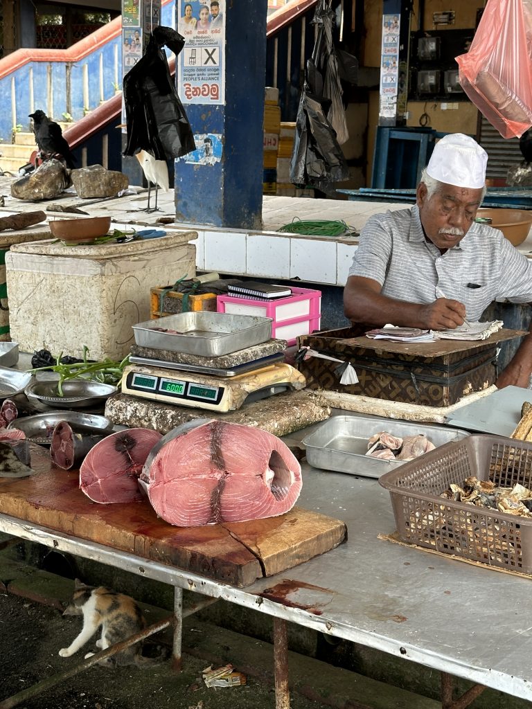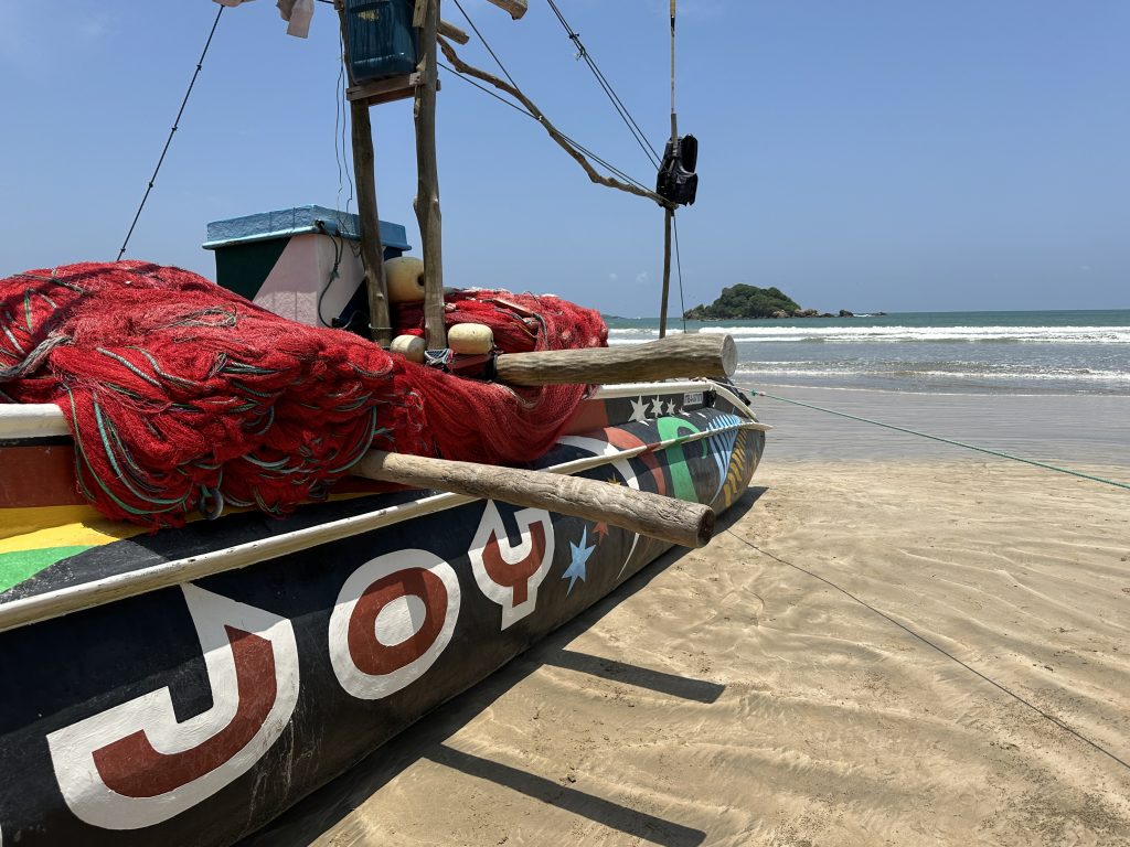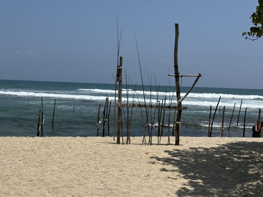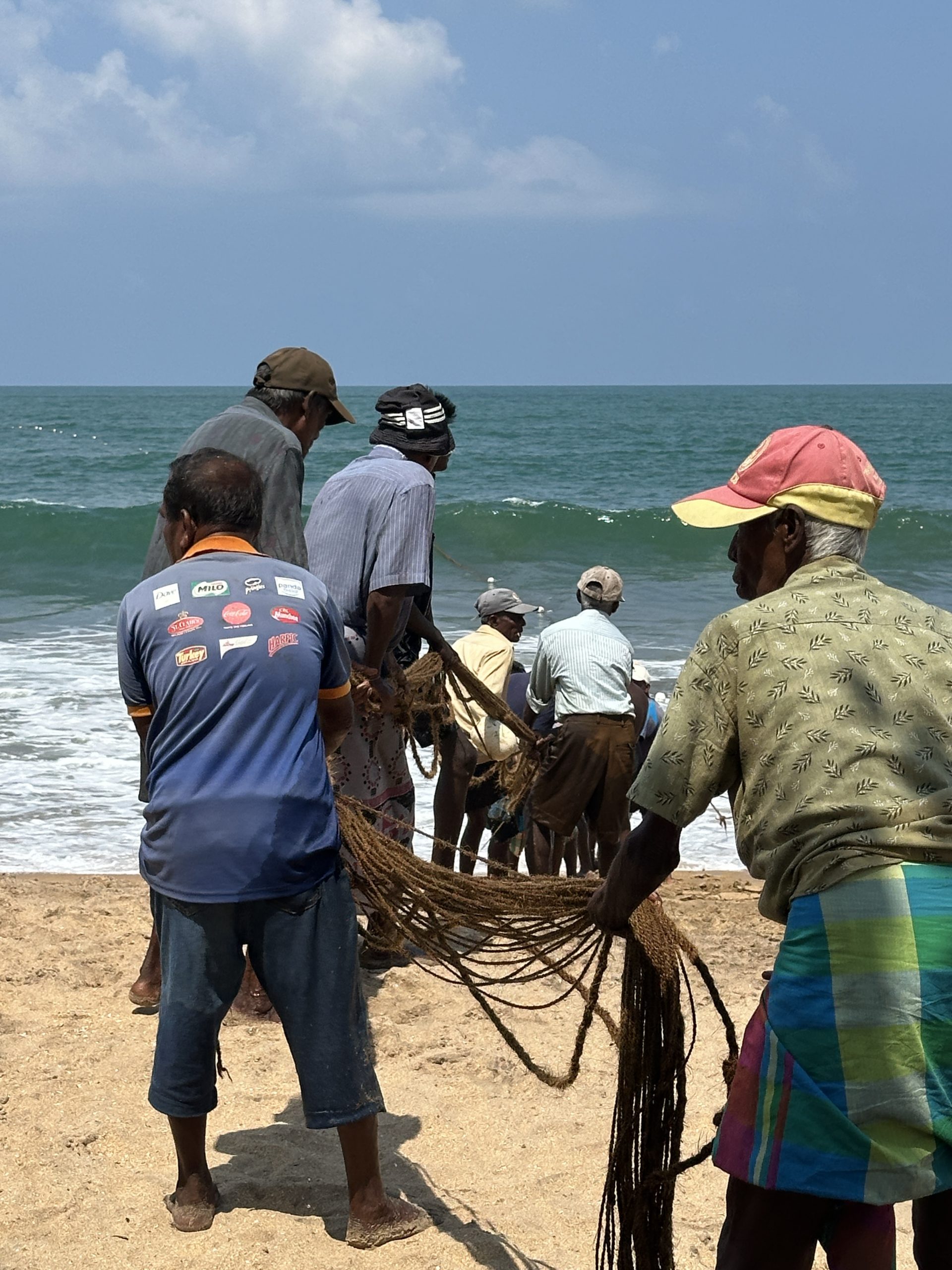 Der letzte ganze Sri Lankan day beginnt mit dem bisher besten Cappuccino — man merkt wohl, dass die Eigentümerin Italienerin ist — sowohl am Akzent als auch am Kaffee. So lange wie möglich bleiben wir auf der „normalen“ Straße, um so viel wie möglich noch vom Sri Lankan way of life mitnehmen zu können. Highlight unserer Stopps sind sicherlich die Netzfischer, denen wir beim Einziehen ihre Fangnetzes vom Strand aus zuschauen dürfen. Real life and not a tourist trap! Recht viele Möglichkeiten, am Strand stehenzubleiben, haben wir jedoch nicht, entweder sind wir zu weit vom Meer entfernt oder alles ist links und rechts von der Straße vollgebaut. Immer wieder sehen wir Ruinen, die 2004 so vom Tsunami getroffen wurden, dass sie aufgegeben wurden und jetzt — 21 Jahre später — wie Mahnmale an diese Katastrophe erinnern. Das eine oder andere nicht gerade vertrauenserweckende Boot in Häfen, in denen diese eng nebeneinander angeleint sind, stößt natürlich auch auf unser Interesse. Irgendwann wechseln wir dann doch auf die Autobahn, um dem noch hektischeren Großstadtverkehr Colombos auszukommen. Unser Hotel Goldie Sands erreichen wir — nach einmal Super-Diesel-Full für 19600 Rupien gegen 13 Uhr. Es ist recht groß, alles wirkt irgendwie wie eine Massenabfertigung ohne persönlichen Spirit und Flair. Das Auto dürfen wir in einer Tiefgarage parken, wobei die Zufahrt vom Nachbargebäude erfolgt und besagte Garage trotz des Lifts ins Hotelgebäude aufgrund des herumliegenden Mülls und Bauschutts den Eindruck einer Baustelle erweckt. Definitiv parken hier nur ganz wenige Touristen! Der Hotelpool und die ganze offene Rezeptionshalle schrecken uns eher ab, perfekt geeignet für durchgetaktete Reisegruppen, die von ihren Reiseführern an die Hand genommen werden. Wir fühlen uns also weder wohl noch willkommen. So entscheiden wir uns unseren Mitsubishi Montero, der bis auf den wackligen linken Seitenspiegel sich als äußerst „brav“ erwiesen hat, doch noch heute abzugeben. An der Rezeption organisieren wir den Flughafenshuttle für morgen Früh — was für die Dame an der Rezeption zunächst einmal wenig vertraut zu sein scheint — und machen uns auf den Weg. Der Abgabe erfolgt problemlos, statt eines normalen Taxis ordern wir ein Tuktuk für den Rückweg ins Hotel. So kommen wir auch noch einmal in den Genuss, mit diesem wackligen Fahrzeug selbst unterwegs zu sein als nur diesem 1000x per day auszuweichen. Außerdem sparen wir uns viel Geld, gekostet hätte es 1000 Rupien, unser seltsam anhaftender Driver bekommt aus Mangel an kleineren Scheinen das Fünffache. Abends werden wir — da im Preis beinhaltet — noch zum Essen gehen. Im Nachhinein ist es trotz des Feelings als Abfüllstation besser als erwartet, gibt es doch Fish & Chips und Brotpudding.