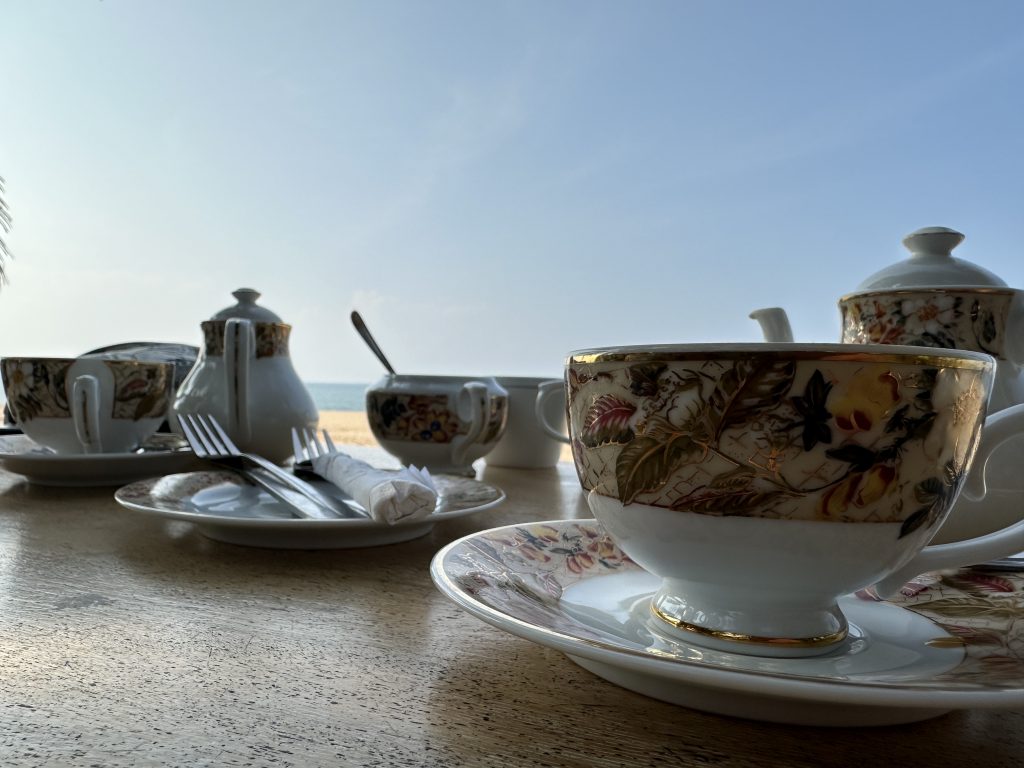 Früh zu Bett und am nächsten Morgen früh auf mit dem ersten „eigenen“ Kaffee im Zimmer: So beginnt der erste ganze Tag in Sri Lanka. Noch bei Dunkelheit …