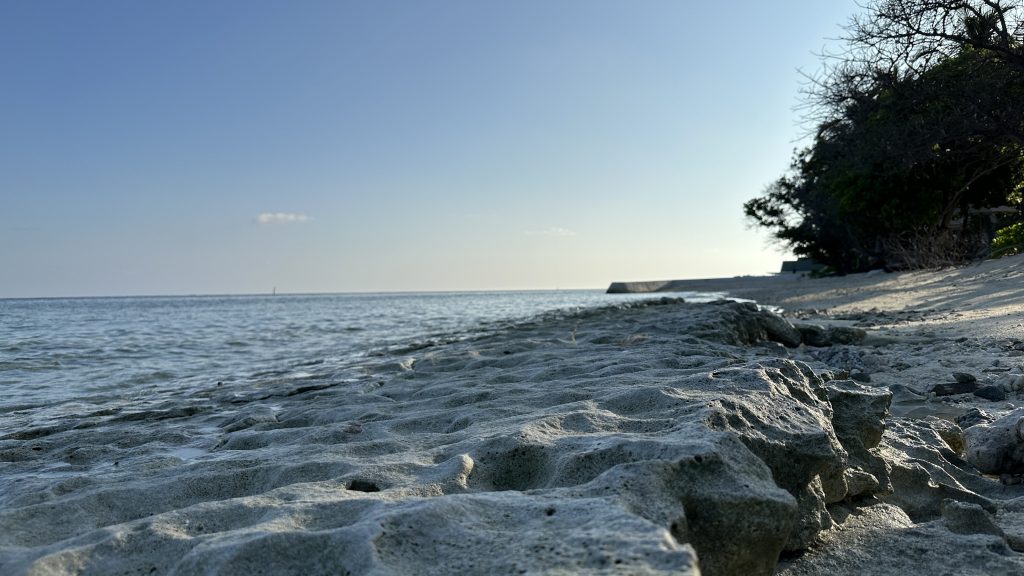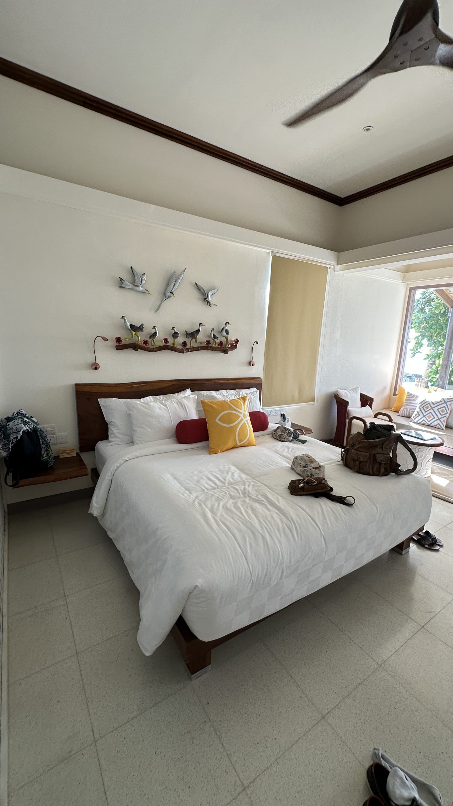 Nach einer warmen Nacht nur mit Ventilator wachen wir gegen 6 Uhr auf. Draußen ist es schon hell, viele Nachbarn inklusive unserer lonesome middle-age-lady vom Nachbarhäuschen spazieren auch schon am Strand entlang. Wir verzichten darauf und trinken wie immer unseren ersten Kaffee — dieses Mal aus unseren eigenen Plastikbechern. Um 7:30 Uhr schleppen wir die Koffer zum Auto, um 8:10 Uhr geht es nach vorne zum Frühstücken. Mit geringer Erwartungshaltung hingegangen überrascht man uns positiv. Es dauert nicht lange, es gibt direkt vornehme Tassen und scrambled eggs plus fruits plus Toast plus Marmelade plus Butter. So bleiben wir sogar noch ein paar Minuten länger sitzen als geplant.