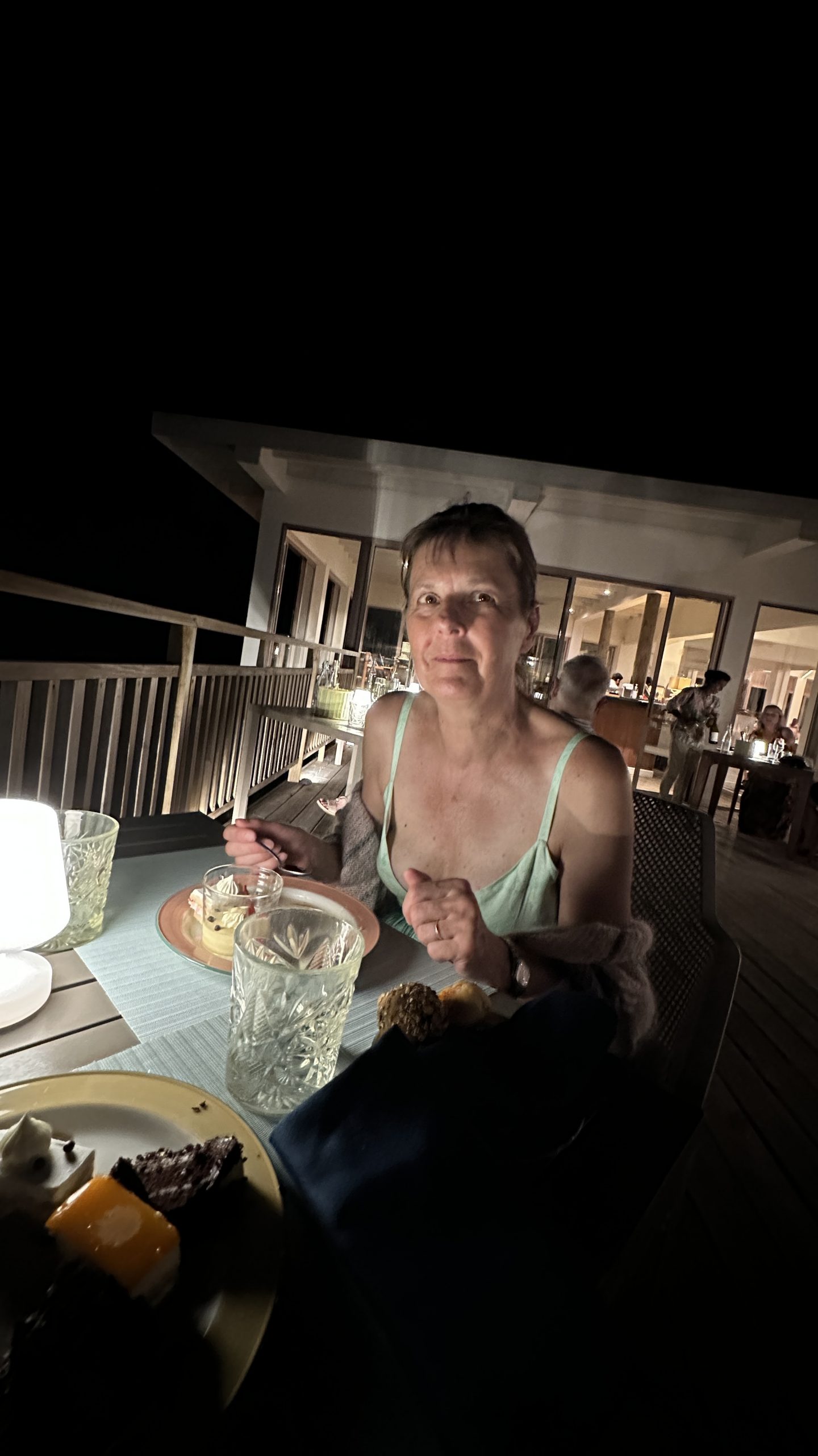 Abends sind wir beim Essen. Auch wenn das Angebot sich ein wenig unterscheidet, verläuft der Dinnerbesuch im Grunde wie am Vorabend. Wir schlagen zu bei den Desserts, beim Rest halten wir uns eher zurück.