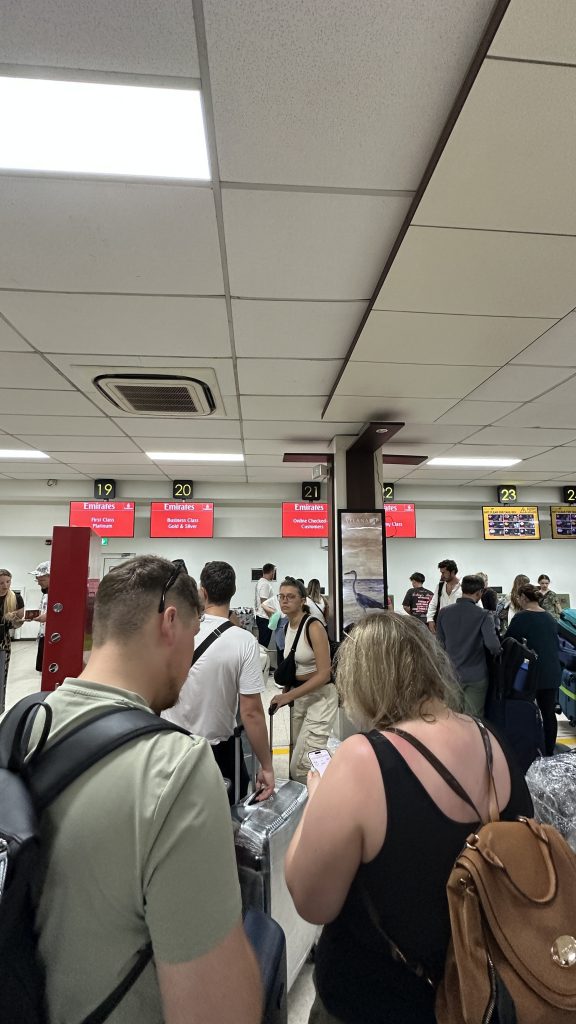 Das Auschecken samt Transport verläuft reibungslos, das Einchecken verwundert uns etwas, denn vor den Schaltern ist eine erste Security vorgeschaltet, bei der alles …