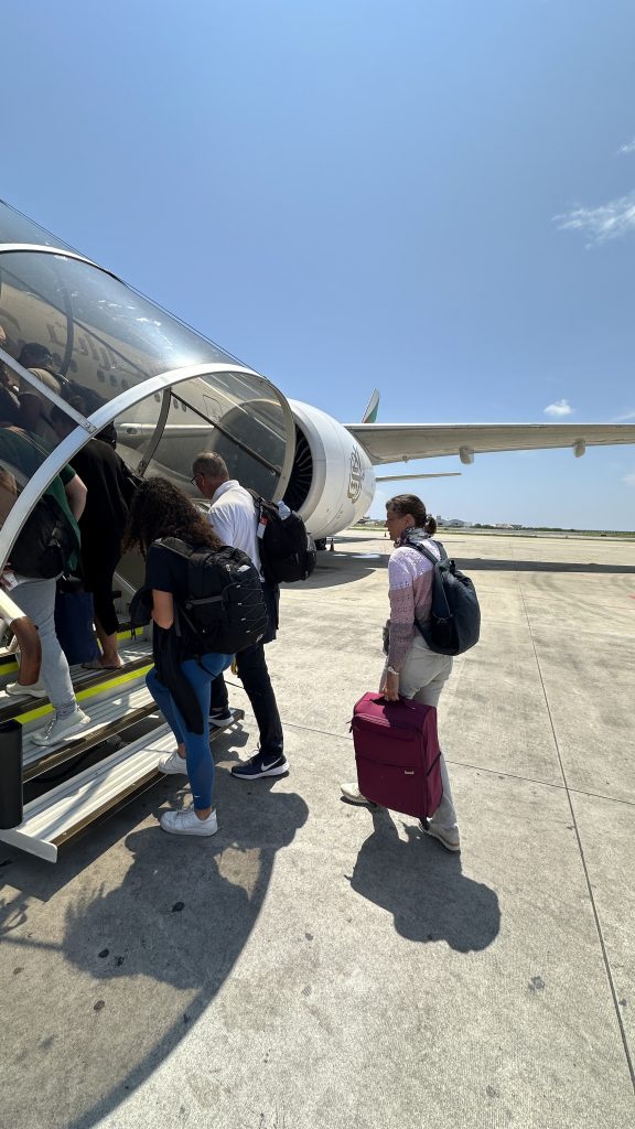 „Um 7 Uhr sollen wir das Gepäck bereit zur Abholung halten, unser Häuschen verlassen und uns zeitnah beim Arrivalbuilding einfinden“, so lauteten unsere Anweisungen …