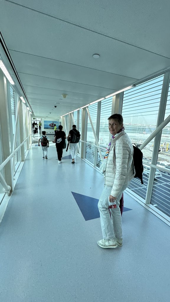 Dass „F“ ein relativ weit entferntes Terminal, das auch nur per Bus erreichbar ist, erfahren wir erst auch vor Ort, weil wir gezwungenermaßen fragen müssen. Nach dem …