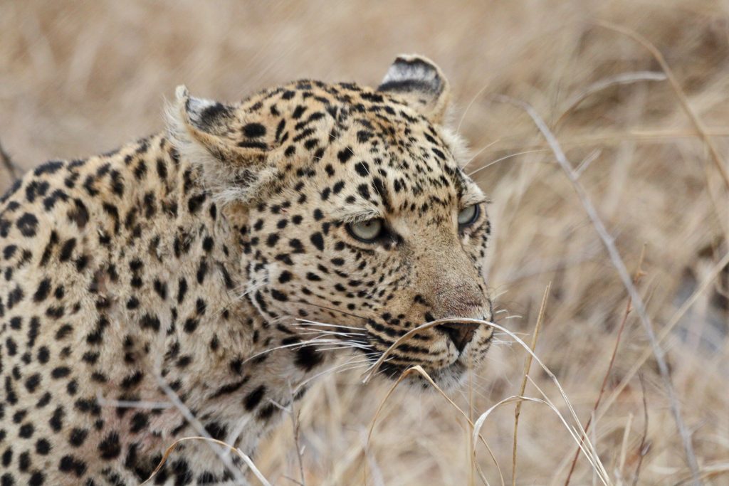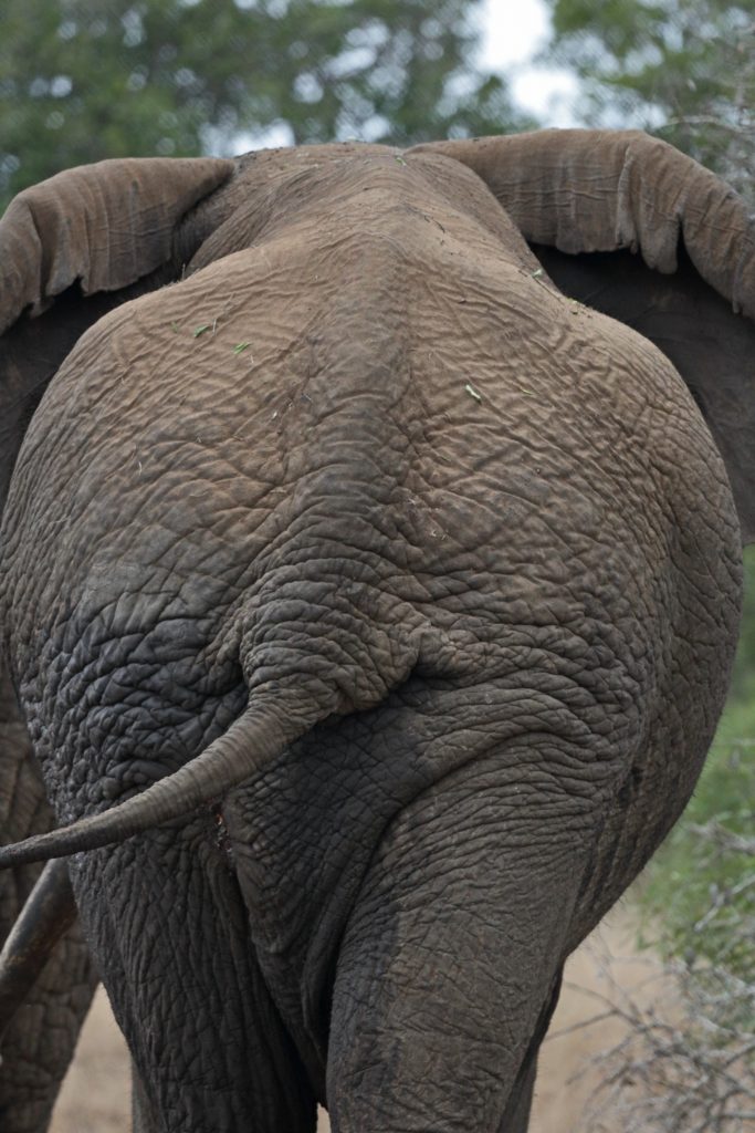 Zu früh gefreut – das Frühstückspaket ging in die Hose. Allerdings hatten wir uns Gott sei Dank im Zimmer einen Tee und einen Instantkaffee gemacht. Es geht zurück nach Hazyview und über das Phabenigate zurück in den Park. Kurz vor Skukuza kommen wir noch in eine etwas sonderbar vollzogene, aber freundlich ablaufende Woman’s Day-Kontrolle, nach Skukuza fahren wir nach Norden in Richtung Satara und dann zum Orpengate. Zwei tierische Highlights versetzen uns in Aufregung: Einmal kommt uns eine Hyäne mittig in der Straße wie ein lonesome stranger entgegen, der zweite Fotoevent ist ein Leopard im Baum mit einer am Boden liegenden Hyäne. Letzteres Event war nicht zu übersehen: Staubildung mit folglich sehr beschränkter Rangiermöglichkeit, um eine bessere Perspektive zu ergattern. Aber für ein paar Fotos mit dem Tele hat es gereicht. Nach dem Orpengate ist unser Ziel die knapp 50 km entfernte Elephants Plains Game Lodge, deren Reservat direkt an den Kruger NP grenzt. Die Beschilderung und die Straßenqualität sind phasenweise recht dürftig, an einer etwas konfusen Kreuzung werden wir aber in die richtige Richtung geleitet. Anscheinend erkennen die Bewohner der meist sehr einfachen Dörfer mit vielen halbfertigen Häusern die „Touris“ schon aus der Ferne. Gegen 13:30 Uhr kommen wir dann entsprechend unserem Zeitplan in-time in der Lodge an, die Begrüßung incl. versprühter Herzlichkeit hält sich in Grenzen. Weitaus positiver ist unsere Villa mit dem Namen Lion, sie wird dem Namen Villa wirklich gerecht: sehr geräumig, Außendusche, ein großes Bad, eine Klimaanlage — gegen die wir angesichts der zuvor im Auto angezeigten 37 Grad nichts haben — und eine riesige Terrasse mit tollem Blick. Um 14 Uhr gibt es dann Lunch und selbiger passt sich dem Zimmerniveau an. Es gibt Spieße und als Nachspeise ein Konfekt. Unser Führer stellt sich vor, er heißt „Kaizer“ und macht einen sympathischen Eindruck auf uns. Um halb vier Uhr startet unser Nachmittagsgamedrive. Er sollte zu viert beginnen und zu sechst enden, denn nach 30 Minuten kehrt unser Kaizer zurück zur Lodge, um das verspätet angekommene Pärchen — aus Kalifornien — abzuholen. Sie stammen aus Los Angeles, sie ist Lehrerin, er ist Kinderarzt, und eigentlich recht nett. Statt Leoparden sehen wir Giraffen, eine Meute Wildhunde, eine Büffelherde und ganz zum Schluss zwei Löwen. Leider ist es zu diesem Zeitpunkt schon extrem finster, tolle Fotos lassen sich aufgrund der Dunkelheit nicht mehr machen.