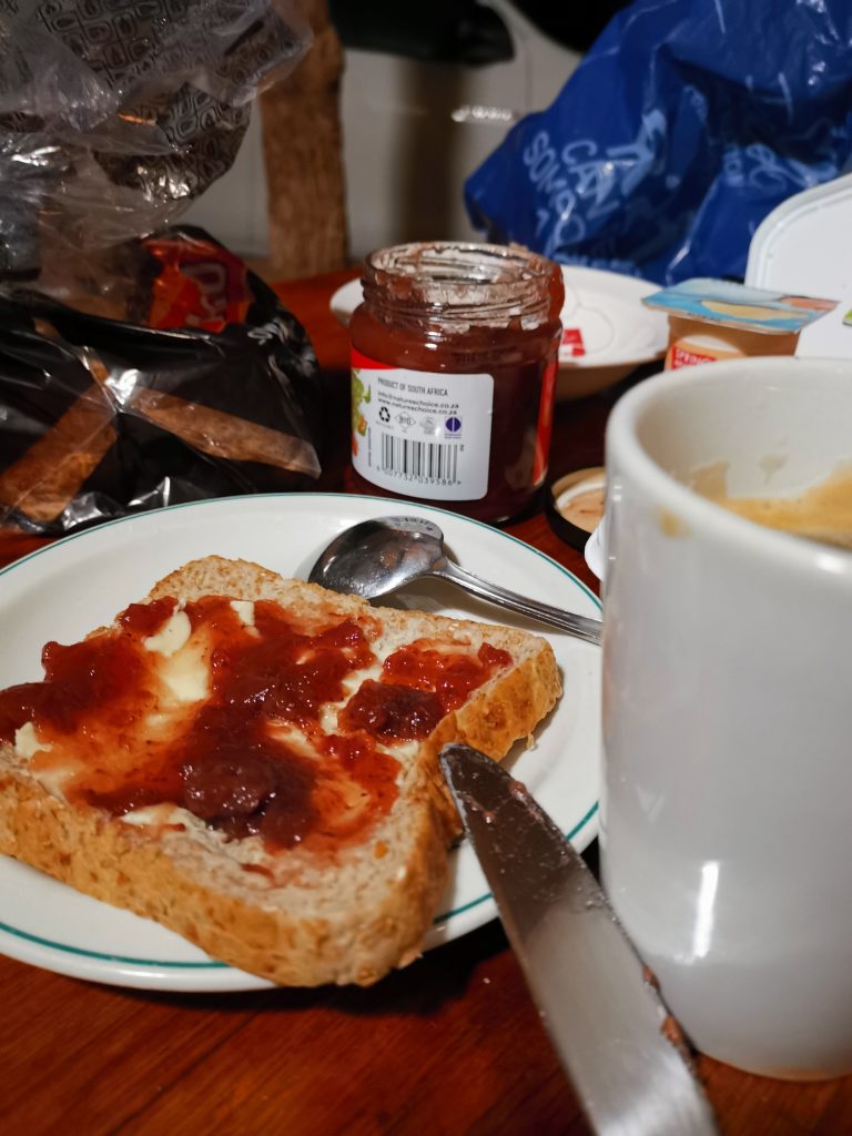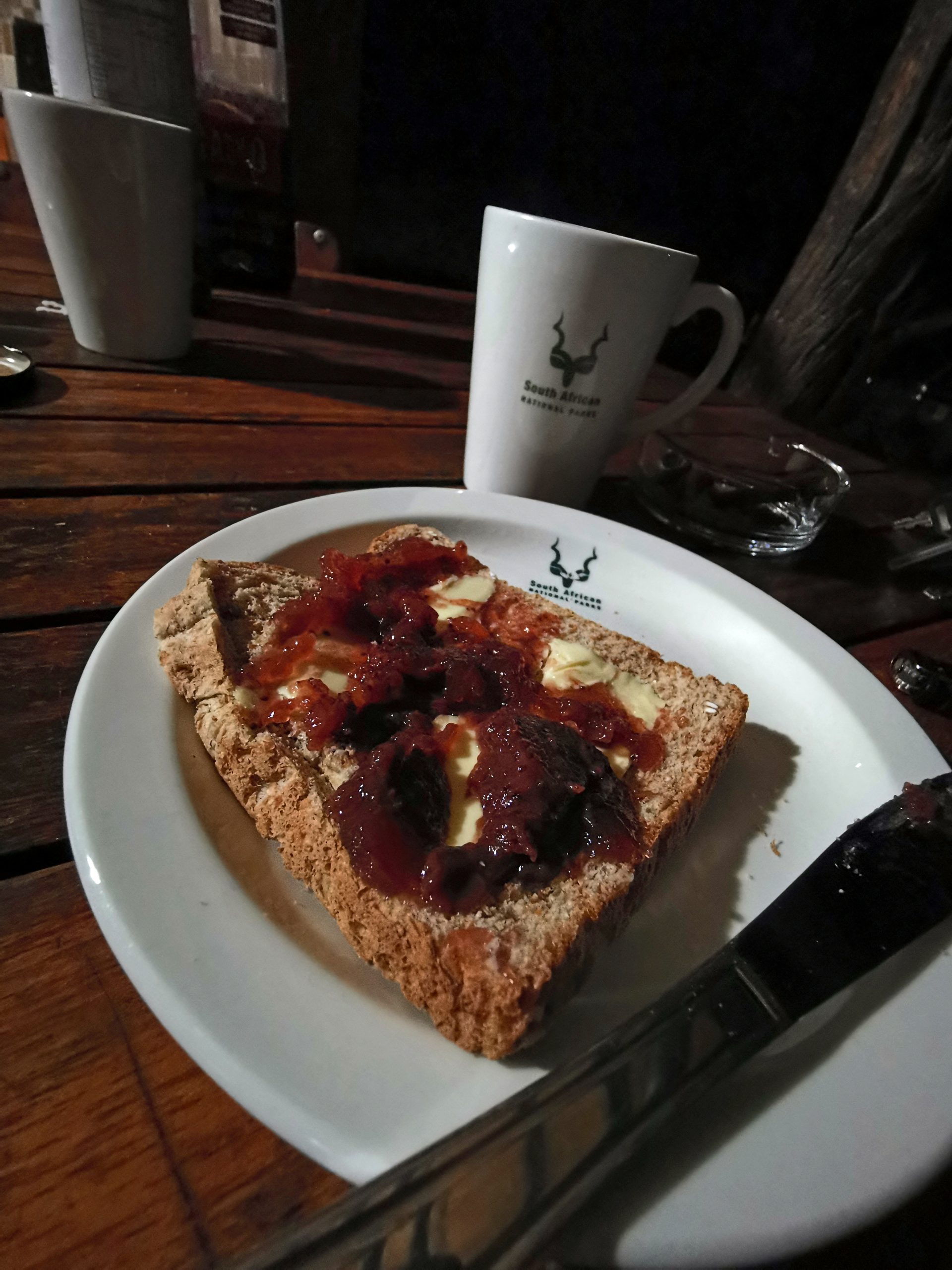 Zu früh gefreut — das Frühstückspaket ging in die Hose. Allerdings hatten wir uns Gott sei Dank im Zimmer einen Tee und einen Instantkaffee gemacht. Es geht zurück nach Hazyview und über das Phabenigate zurück in den Park…