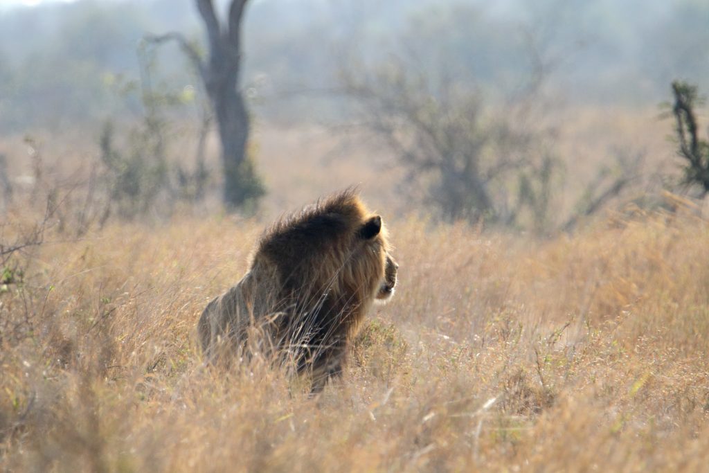 Dieses Mal wird unser Morgengamedrive wirklich in der Gänze zur private session. So kann man wirklich die eine oder andere private Frage stellen. James ist gelernter Automechaniker, interessiert sich für Motorsport, war deshalb schon einmal in Holland und bevorzugt fußballtechnisch die Premier League. „Tiertechnisch“ sehen wir anfangs zwei männliche Löwen, die wir bald aus den Augen verlieren. Etwas weiter südlicher beobachten wir aus der Ferne nochmals zwei Löwen, die sich unterhalb eines Baumes zur Ruhe gelegt haben, also wenig action bieten. Der Kaffeekurzstopp erfolgt an der Picknickstation links in Richtung Lower Sabie.