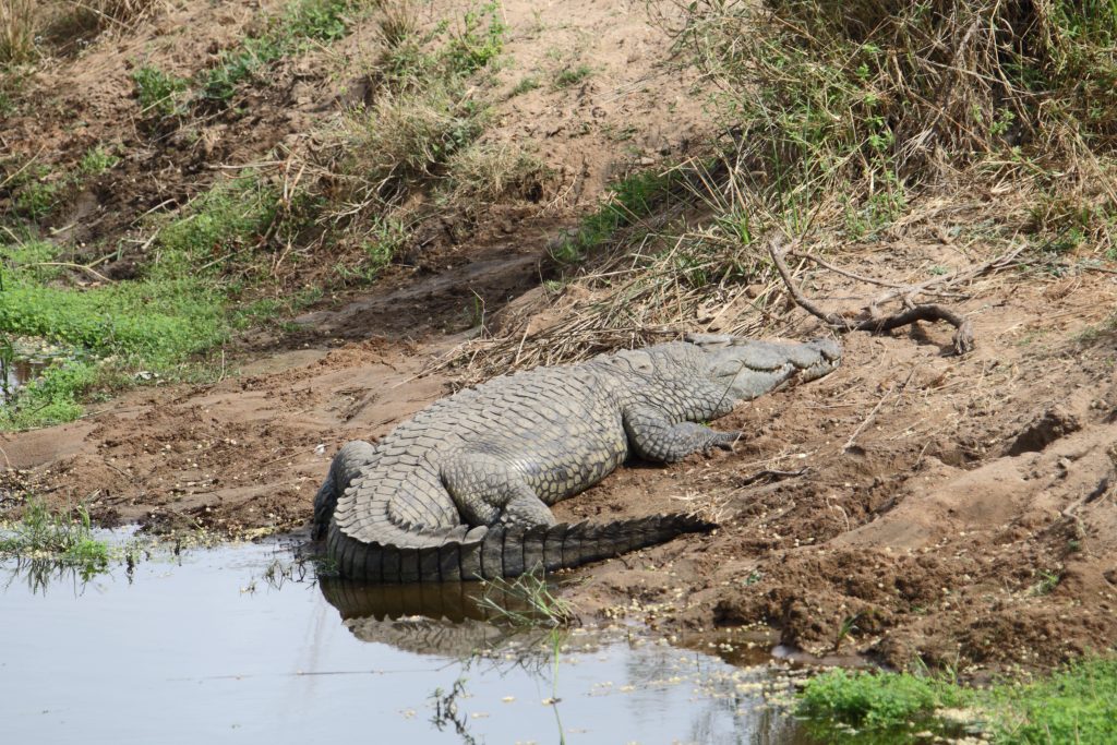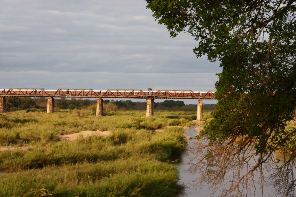 Nach dem „schmalen“ Frühstück starten wir unsere Tagestour um 6:02 Uhr. Ziel ist als südlichster Punkt die Crocodile Bridge. Tierbegegnungen gibt es kaum: ein Löwe auf Steinen in 100 m Entfernung und ein motzender, einsamer Elefant, dem wir anscheinend die Laune verdorben haben, weil wir ihm im Weg waren. Schnell im Rückwärtsgang ein paar Meter zurück — Gott sei Dank stand hinter uns noch niemand — und die Gefahr ist gebannt. Bei Crocodile Bridge fotografieren wir — dem Ortsnamen entsprechend — ein Krokodil, ein Hornrabe gibt sich noch die Ehre und ein paar Affen direkt an der Straße sind auch noch einen Kurzstopp wert. Des Fahrens müde kehren wir recht früh nach Skukuza zurück, stehen uns doch zwei relativ lange Fahrtage bevor. Der Hamburger im Restaurant entspricht zwar nicht dem, was wir von Olifants vor zwei Jahren in Erinnerung hatten, aber unseren Hunger stillt er trotzdem. Schnell die Mails beim Hot Spot gecheckt und ein Foto der Lodge „Shalati — the Train on the Bridge“ gemacht, dann verziehen wir uns zu unserem Häuschen. Abends bekommen wir noch Besuch vom Nachbar — er hatte uns vorher schon von seinem Uraltgolf beim Vorbeifahren freundlich zugewunken. Aufgefallen war er uns auch schon durch seine vornehme Kleidung — eine schwarze lange Hose und ein braunes Sakko sind sicherlich normal im Kruger. Irgendwann entdecken wir ihn dann im „offenen“ Küchenhäuschen samt Frau beim Kochen incl. übergehendem Topf mit weißer Pampe. Anscheinend haben ihn unsere neugierigen Blicke auf uns aufmerksam gemacht, denn er kommt herüber und stellt sich als headmaster und Pastor vor. So kommen wir ins Gespräch mit ihm, er bittet um unsere Kontaktdaten und spricht zu guter Letzt noch ein Gebet für uns.