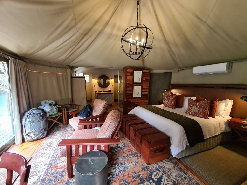 Das Dinner gibt es drinnen, eine sechsköpfige US-Rentnergruppe ist Gott sei Dank auch so zurückhaltend, dass wir unser Beefsteak mit Blumenkohl und Kartoffelbrei erneut in Ruhe genießen können. Für Unterhaltung sorgen unsere kurzen Gespräche mit Vela über Fußball und seinen Versuchen, den einen oder anderen deutschen Ausdruck anzubringen. Mit Kerzenlicht, Amarula und einer eingelassenen Badewanne überrascht man uns, als wir in unser Zimmer zurückkehren. Der letzte Abend hier lässt uns angesichts des bevorstehenden Urlaubsendes und dem, was danach leider wieder folgt, nachdenklich werden.