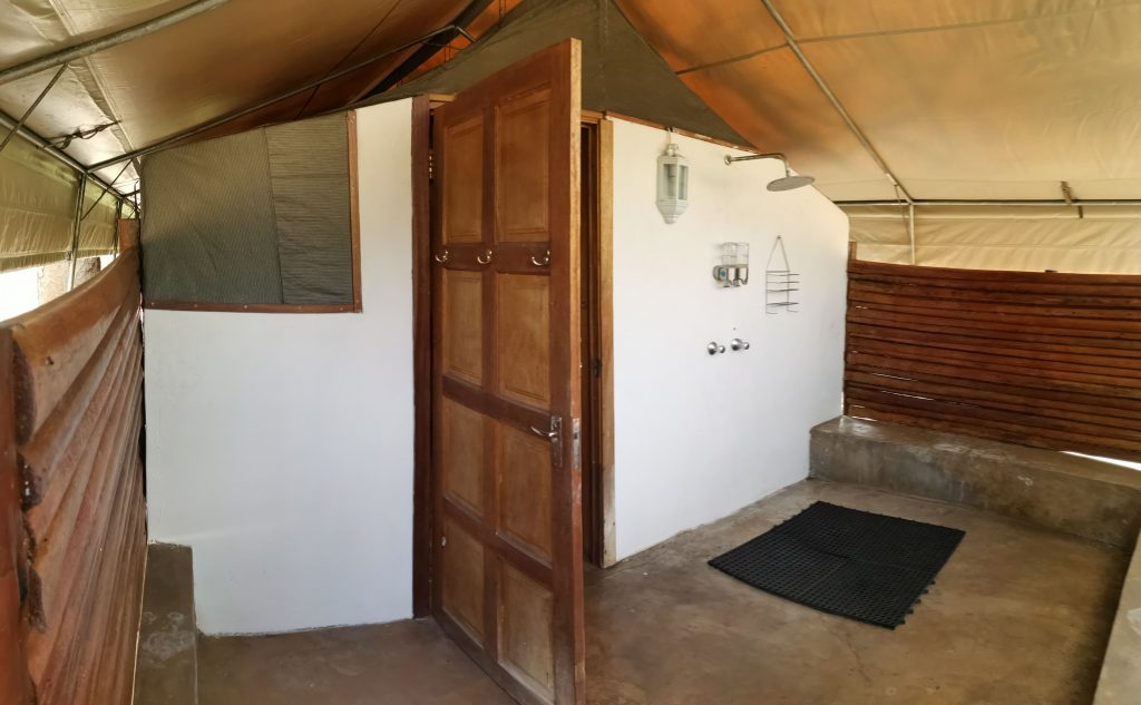 Tembe erreichen wir kurz vor 2 Uhr, der Nachmittagsgamedrive ist also gesichert. Das zügige Fahren incl. vorgezogenem Frühstück hat sich – so meinen wir zu diesem Zeitpunkt – gelohnt. Unser Familienzelt — auch hier mit der Nummerierung 2 — ist recht weit vom Haupthaus entfernt. Nun beginnt der „Tembeminusbericht“: 1) Das Warmwasser unserer Außendusche geht nicht. 2) Der Gamedrive erweist sich als Vogelbeobachtungs-Rentner-Trip mit halbiertem Gin-Tonic ohne jeglicher Raubkatze bzw. Großgraugetier. 3) Auf das Dinner mit anvisiertem Beginn um 18:30 Uhr warten wir eine geschlagene Dreiviertelstunde. 4) Das Wort „herzlich“ oder „We are so sorry about the shower problems“ kennt man in Tembe nicht.