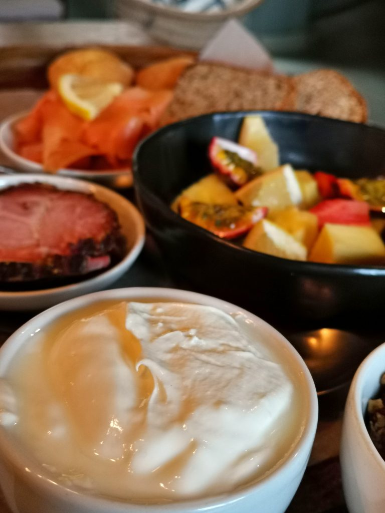 Das Frühstück um 8 Uhr — die Koffer haben wir natürlich schon ins Auto gebracht — führt das Dinnererlebnis fort. Serviert