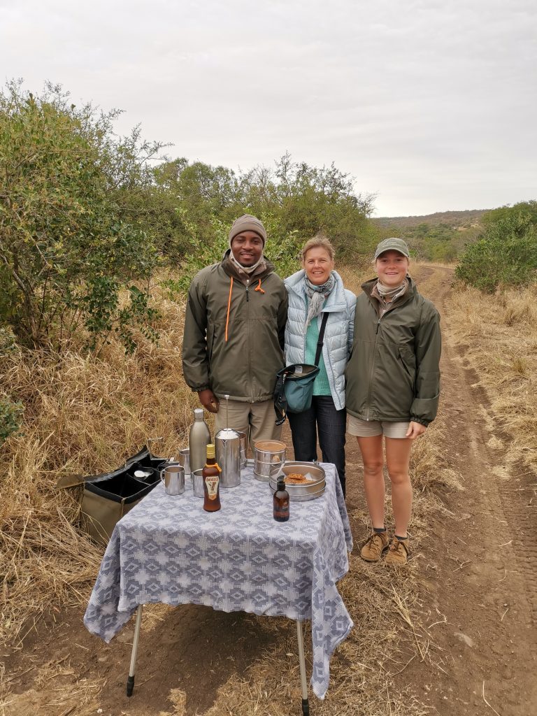 Das short breakfast wird coronabedingt zum Häuschen gebracht. Der Morgengamedrive verläuft außer 50 m …