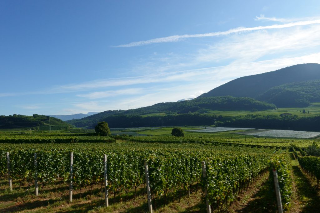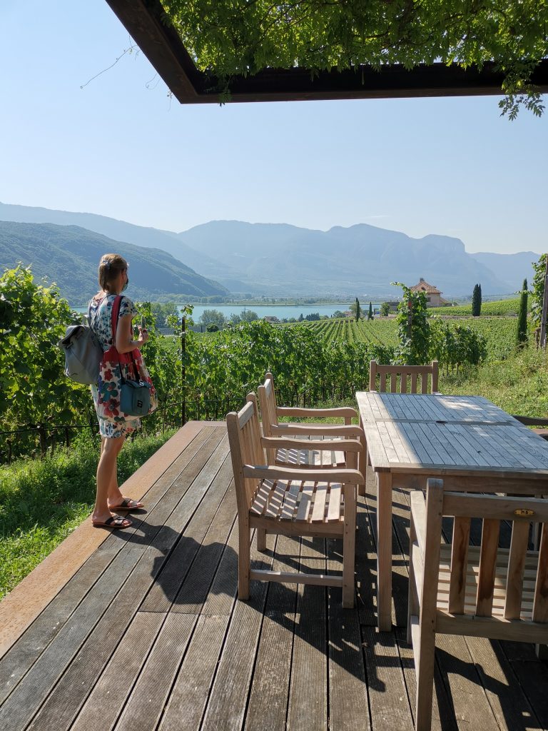 Der Anfang der Nacht war extrem heiß. Irgendwann wurde es dann doch etwas kühler, und so starten wir recht frisch in den Tag – mit einer gewissen Ungewissheit, was wir heute eigentlich unternehmen wollen. Vielleicht ist es das kühle Wasser des Sees, das uns schließlich erlöst – auch in der Entscheidung, a) einen Tag länger hier zu bleiben, und b) mit dem Vorhaben, den See mit unseren Rädern zu umrunden. An der Rezeption ist die Verlängerung unseres Aufenthalts schnell geklärt, ebenso wie die Frage nach einer geeigneten Route und einem Weingut, das man besichtigen könnte – beides wird zügig beantwortet. Wir lösen die Befestigungen unserer Räder am Heck des Wohnmobils, und schon startet unsere erste italienische Radtour – gegen 09:30 Uhr. Es geht zurück in Richtung Kaltern, zunächst über einen recht malerischen Radweg durch Weinberge und Apfelplantagen. Den letzten Abschnitt, vielleicht einen Kilometer, legen wir auf der Weinstraße zurück – vorsichtig und mit Rücksicht auf den Verkehr. Im Weingut Manincor angekommen, fragen wir nach Führungen – und dürfen uns einer kleinen Gruppe von etwa zehn Personen anschließen. Im Grunde müssen wir kaum warten, und die Führung ist zudem kostenlos. Unsere Führerin – ein junges Mädchen, das uns das Angebot im Shop gemacht hatte – gibt uns einen kurzweiligen Einblick in die Weinherstellung. Sie macht das auf eine sehr natürliche und sympathische Art. Am Ende gönnen wir uns eine nicht ganz günstige Flasche Rubatsch sowie einen Bio-Apfelsaft. Dann geht es zurück auf den Radweg, und wir setzen unsere Seeumrundung fort. Zum Glück halten sich die Steigungen in Grenzen. Einige Hotels am Weg – wie das Seehotel Ambach oder das Hotel Belvita – wecken bei uns angesichts des offensichtlichen Komforts doch ein gewisses Interesse. Gegen Mittag erreichen wir wieder unseren Campingplatz. Den restlichen Tag verbringen wir mit Lesen und zwei erfrischenden Schwimmeinheiten im See.