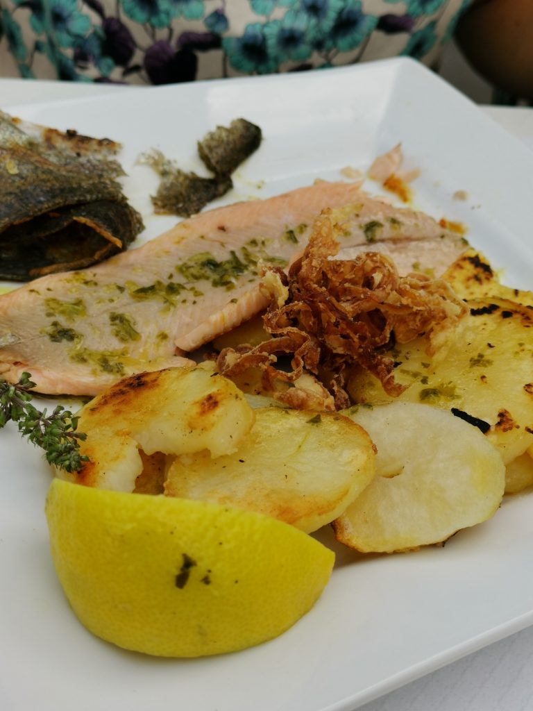 Am Abend entscheiden wir uns, im kleinen Restaurant bei der Rezeption einzukehren – und endlich wieder etwas Warmes zu essen, in der Hoffnung, dass vielleicht ein abendliches Gewitter zur Abkühlung beiträgt. Leider sieht es nicht danach aus. Also sitzen wir lesend und schreibend vor unserem Fahrzeug – die Zeit am Lago di Caldaro geht dem Ende zu.