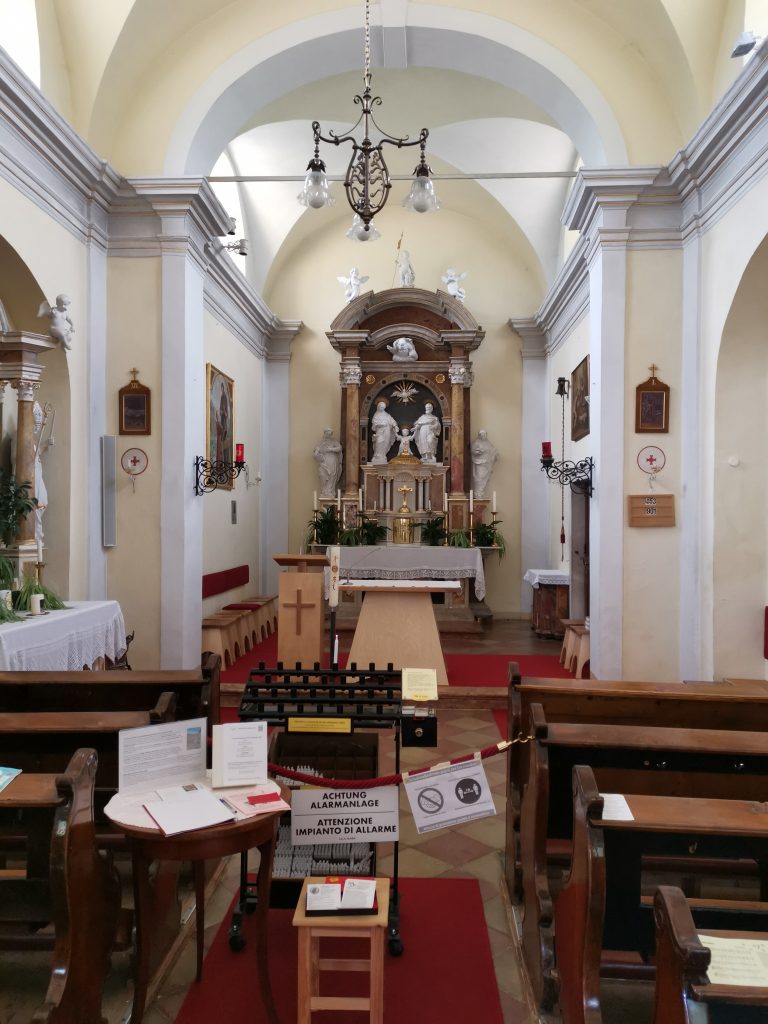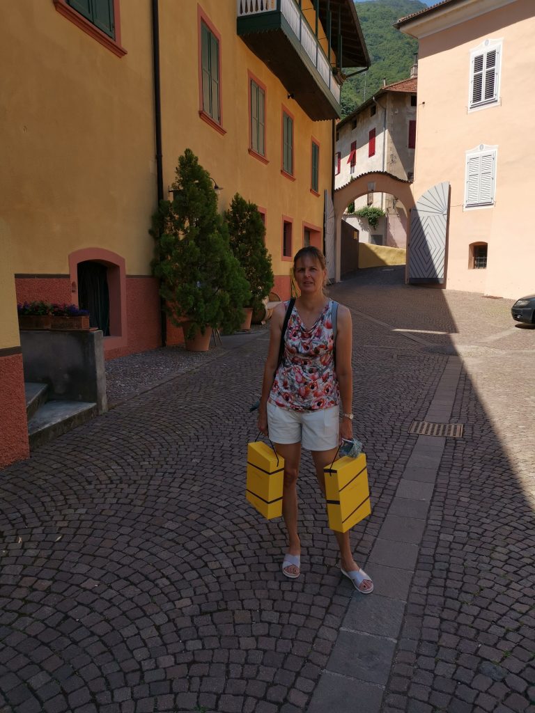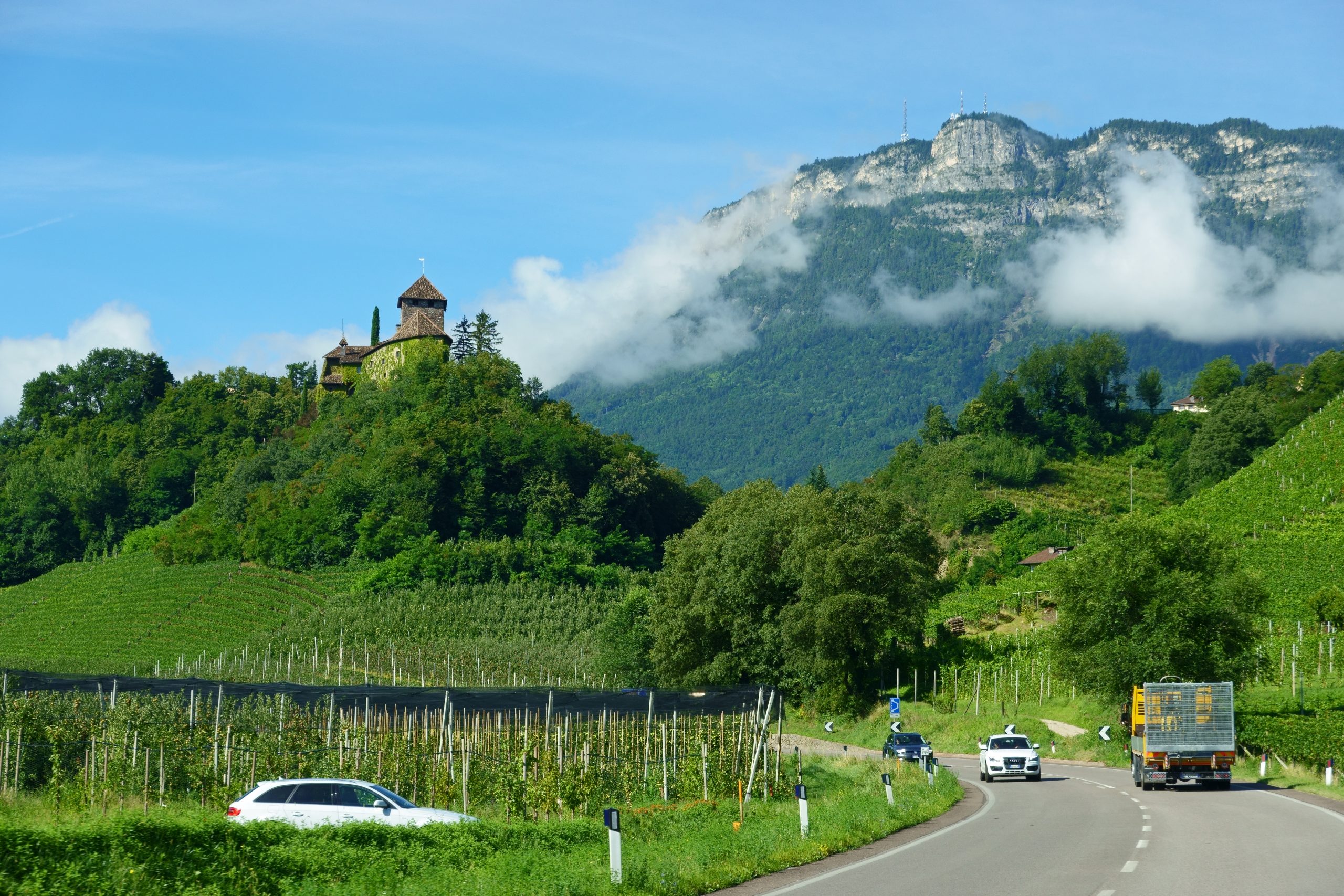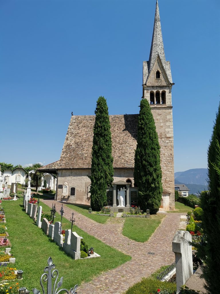 Wie immer stehen wir zwischen 06:30 Uhr und 07:00 Uhr auf. Nach dem Frühstück verabschieden wir uns vom Kalterer See und beginnen mit den Abreisevorbereitungen. Unsere Stühle und der Tisch sind rasch verstaut, dann ziehen wir den Stromstecker und machen das Wohnmobil abfahrbereit. Weiter geht es zur Servicestation. So ganz rund läuft es dort aber nicht: Für das Grauwasser benötigen wir einen Plastikschlauch, und auch beim Auffüllen des Frischwassertanks reicht der vorhandene Schlauch nicht aus. Warum einfach, wenn’s auch umständlich geht? Wir füllen zuerst den Plastikkanister und gießen das Wasser dann von dort in den Tank. Anschließend düsen wir los, über den Mendelpass – der sich anfangs problemlos fahren lässt. Doch später wird die Straße immer enger. Angesichts der vielen Radfahrer und entgegenkommenden Motorradfahrer wird es teilweise richtig gefährlich. Irgendwie wird uns klar, dass wir ziellos umherfahren. Wohin wollen wir eigentlich? Zum Gardasee, zum Meer oder woanders hin? Recht kurzfristig fällt dann die Entscheidung: Wir wollen zurück – aber nicht auf derselben Route. Am Wendepunkt machen wir Halt bei Mezzolombardo. Nach einem Supermarktstopp geht es weiter zur Strada del Vino in Richtung Tramin. Hier stoppen wir kurz bei der Kirche St. Valentin, die etwas außerhalb des Orts Tramin direkt an der Weinstraße liegt. Diesen Abstecher lassen wir uns nicht entgehen – schon allein wegen Elena Walch. Dort kaufen wir sechs Flaschen Wein für über 200 €. Der junge Verkäufer ist extrem freundlich, wir dürfen die Weine probieren – und die Elena Walch Broschüre gibt es aufgrund der Namensgleichheit sogar geschenkt. Gegen 14:00 Uhr sind wir wieder zurück auf dem Campingplatz. Leider ist unser alter Stellplatz schon vergeben, aber wir stehen nun eine Reihe weiter – sogar mit etwas mehr Schatten. Die Umstellung ist bei nur etwa 50 Metern Entfernung wirklich verschmerzbar. Dass beim Einparken der Fahrerkorb den Baum touchiert und dabei an Wert verliert, passt irgendwie zum leicht konfusen Tagesablauf. Aber wir geloben Besserung: Für morgen haben wir einen Plan. Wir wollen mit dem Fahrrad nach Kaltern, Sankt Michael und Sankt Pauls. Mal sehen, ob dieser Plan auch in der Realität umsetzbar ist – und ob unsere „große Fahrradliebe“ nicht doch zum Albtraum wird.