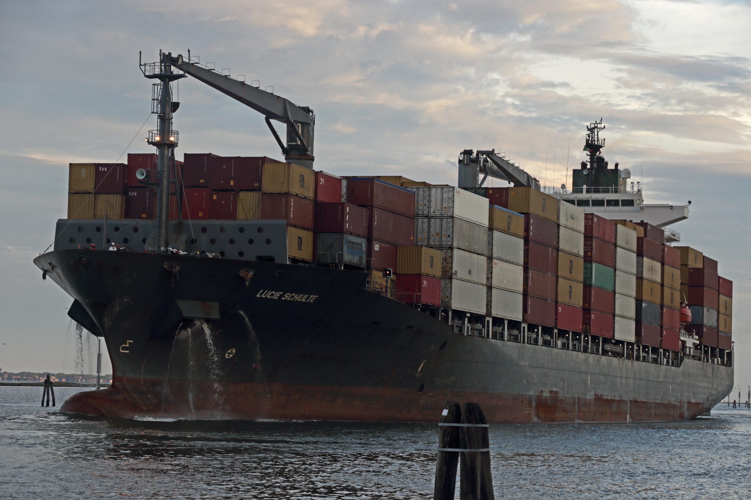 Frühstücken, Badengehen, Wohnmobilservice – so beginnt der Tag erwartungsgemäß, nach einer angenehm kühlen Nacht. Kurz nach 09:00 Uhr verlassen wir den Campingplatz St. Josef am See. Noch einmal zur Richtung Sankt Michael: Eigentlich wollten wir dort noch die Gleifkirche besichtigen, aber entweder ist unser Wohnmobil zu groß oder der Mut fehlt uns, in den engen Gässchen nach oben zu fahren. Wenigstens erhaschen wir von unten einen Blick darauf. Dann geht es über die Straße in Richtung Tramin, dann gegen Padua, und anschließend Richtung Venedig. Bis kurz vor Padua fahren wir auf nicht gebührenpflichtigen Autobahnen. Die Eindrücke links und rechts der Strecke halten sich in Grenzen – abgesehen von ein paar Burgen gibt die Landschaft nicht viel her. Die Route zieht sich, obwohl es gefühlt stundenlang dauert, sind es tatsächlich maximal 60 Minuten, die wir von einer Nebenstraße zur nächsten, von einem unattraktiven Ort zum anderen fahren. Es ist nicht nur optisch langweilig, sondern auch anstrengend – denn über Kilometer hinweg verläuft der rechte Fahrbahnrand direkt neben einem etwa 1,5 Meter tiefen Kanälchen. Das erfordert ständige Aufmerksamkeit. Leicht genervt erreichen wir schließlich unseren Zielort: den Campingplatz Fusina Venezia. Unser zugewiesener Platz – Nummer 128 – liegt direkt am Wasser, mit Blick auf den Hafen von Venedig. Ein paar Kilometer Wasser trennen uns von der Lagunenstadt – mit freiem Blick und angenehmer Abwechslung: Der eine oder andere große Pott fährt, begleitet von Lotsenschiffen, direkt vor unserer Nase vorbei. Der erste Tanker heißt Atlantic Symphony, ein riesiger Chemietanker unter Hongkong-Flagge, gerade aus Barcelona kommend. Doch das Glück ist nur von kurzer Dauer. Kaum haben wir uns eingerichtet, beginnt es zu tröpfeln. Etwa eineinhalb Stunden später gießt es so stark, dass man das Wohnmobil nicht mehr verlassen kann. In den wenigen regenfreien Minuten zuvor hatten wir noch schnell die Duschen und den Shop unter die Lupe genommen. Jetzt gerade lässt der Regen etwas nach – wenigstens können wir die Türen wieder öffnen. In uns keimt die Hoffnung, dass unser geplanter Besuch in Venedig morgen doch nicht ins Wasser fällt. Gerade eben fährt ein weiteres Schiff vorbei: ein 113 Meter langes Containerschiff namens Lucy Borchard unter der Flagge von Antigua und Barbuda.