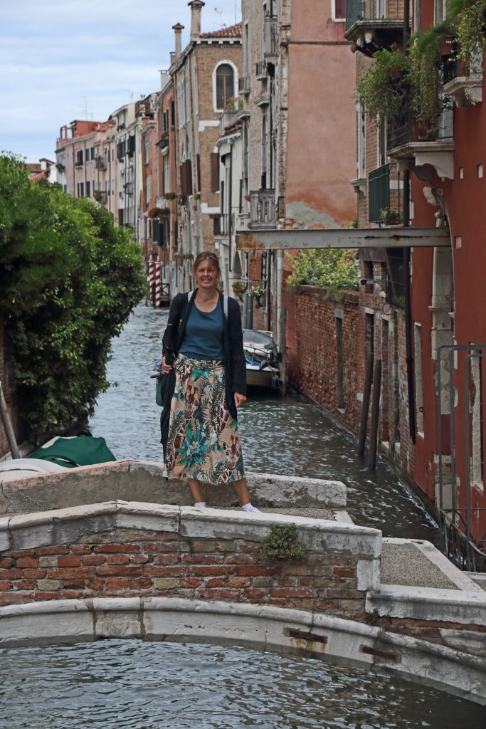 Gut geschlafen! – Mit diesem erfreulichen Resümee der letzten Nacht beginnt unser Tag. Und noch besser: Entgegen der Prognose mit 90 % Regenwahrscheinlichkeit ist es trocken. Das Vaporetto erreichen wir pünktlich. Es ist erfreulich coronafreundlich besetzt – sprich: ziemlich leer. Zügig gleitet es entlang der nummerierten Strecke mit den aus dem Wasser ragenden Holzpfählen Richtung Zattere, unserem Ziel in Venedig. Der erste Eindruck von Venedig ist überraschend positiv: Die Menschen, denen wir begegnen, sind definitiv keine Touristen. Auch die ersten Gondeln, die wir sehen, dienen eher der Versorgung als dem Tourismus. Doch dieser Eindruck hält nicht lange. Je näher wir dem Zentrum kommen, desto mehr füllt sich die Stadt mit Besuchern. Zunächst erreichen wir den Markusplatz – noch relativ ruhig. Doch auf dem Weg zur Rialtobrücke werden es deutlich mehr, und zurück am Markusplatz ist von Ruhe keine Rede mehr. Die ersten Schlangen stehen bereits vor dem Campanile oder vor dem Dogenpalast. Ein weiteres Problem: die Suche nach einem geeigneten Café. Unsere Karten und Apps führen uns entweder nicht ans Ziel oder zu Pizzerien und Bäckereien, bei denen man nicht im Freien sitzen kann. So irren wir etwas ziellos umher. Als Folge machen sich langsam erste körperliche Beschwerden bemerkbar – unsere Füße melden sich. Schließlich landen wir in einem online gefundenen Restaurant etwas außerhalb des Touristen-Hotspots, im Stadtteil Castello. Aus dem geplanten Cafébesuch wird leider nichts, dafür bekommen wir aber leckere Spaghetti mit Olivenöl, Peperoni und Knoblauch serviert. Anschließend geht es langsam zurück, wobei wir den Wunsch nach einem Kaffee fast schon aufgegeben haben. Doch am Campo Santa Maria Stefano werden wir doch noch fündig: Es gibt Tiramisu und English Tea für Madame, einen Cappuccino mit Orzo Nocciolino und Mono Meringa für den Monsieur. Mittlerweile beweist der Schrittzähler auf der Huawei-Uhr, dass unser Tagespensum nicht von schlechten Eltern ist. Die Rückfahrt mit der Fähre treten wir wieder pünktlich an – diesmal jedoch bei extrem dunklem Himmel und aufziehendem Gewitter. Im Gegensatz zum Morgen ist die Fähre jetzt proppenvoll. Von Sicherheitsabstand kann keine Rede mehr sein – erfreulicherweise tragen aber alle Passagiere einen Mund-Nasen-Schutz. Fusina erreichen wir mit unserer ständigen Tagesbegleitung: dem Regenschirm, der bisher funktionslos im Rucksack mitgereist war. Nun darf er endlich seinen Dienst tun. Zurück am Campingplatz: Duschen, dem Lagrein von Elena Walch, und dann endet unser Tag um 20:45 Uhr mit einem etwas abrupten Abbruch des Außenaufenthalts aufgrund ein weiteres Gewitters.