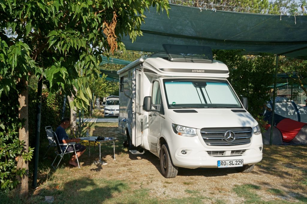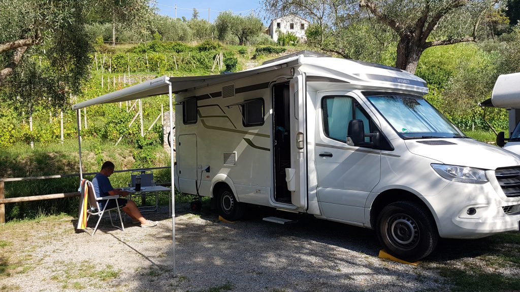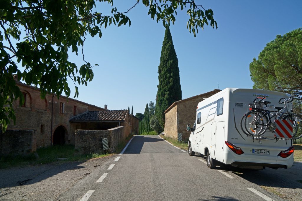 Die Toskana bietet viel – aber sie war uns zu heiß. Wir haben in diesen Tagen viele wertvolle Erfahrungen gesammelt, vor allem, was das Reisen mit dem Wohnmobil betrifft. Mit einem Wohnmobil ist man nur scheinbar mobil. Schnell mal stehen bleiben, spontan eine Sehenswürdigkeit mitnehmen, einfach parken – das ist mit einem Fahrzeug dieser Größe nicht realistisch, ganz im Gegensatz zu unseren Erlebnissen mit den RVs in Nordamerika. Ohne Roller als Ergänzung macht das Wohnmobil für uns keinen Sinn, weil wir weder Lust noch Kondition haben, steile Strecken zu Fuß zu bewältigen, nur um dann verschwitzt vor einer Sehenswürdigkeit zu stehen. Wir sind uns auch einig, dass der Trend zum E-Bike an uns vorbeigehen wird. Unsere Anforderungen sind klar, eine deutlich größere Nasszelle, ein höherer Schlafbereich, in dem man sich vernünftig bewegen kann und eine Klimaanlage für den Wohnbereich. Der Mercedes als Basisfahrzeug war allerdings genial: super zu fahren, ausreichend motorisiert, sehr komfortabel – solange man nicht durch enge Gassen muss oder auf der Autobahn von LKWs in Baustellen bedrängt wird. Was wir gelernt haben über Campingplätze, ist, dass wir Plätze mit Pool und Animation meiden sollten. Die Stellplätze müssen groß genug sein, damit man sich nicht im 1,5 Meter Abstand mit anderen Campern auf der Pelle sitzt. Wir hatten wenigstens unseren Ventilator dabei – ohne diesen „Begleiter“ wären wir vermutlich vorzeitig abgereist, vielleicht in Richtung Atlantik oder Nordseeküste. Für den defekten Spiegel mussten wir erfreulicherweise nur 30 € bezahlen – wir haben auf die Meldung bei der Versicherung verzichtet. Die Kratzer an der Tür wurden entweder nicht moniert oder nicht bemerkt – vermutlich auch, weil das Fahrzeug bei der Rückgabe nicht von uns geparkt wurde, sondern von den Mitarbeitern selbst.