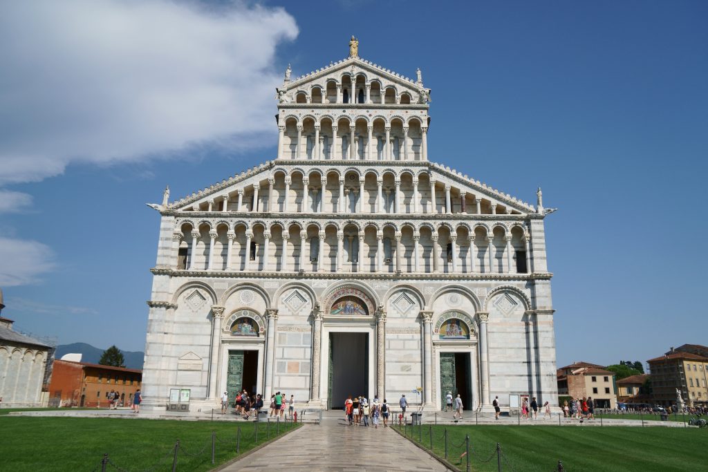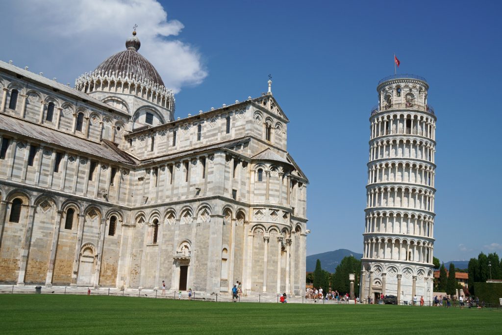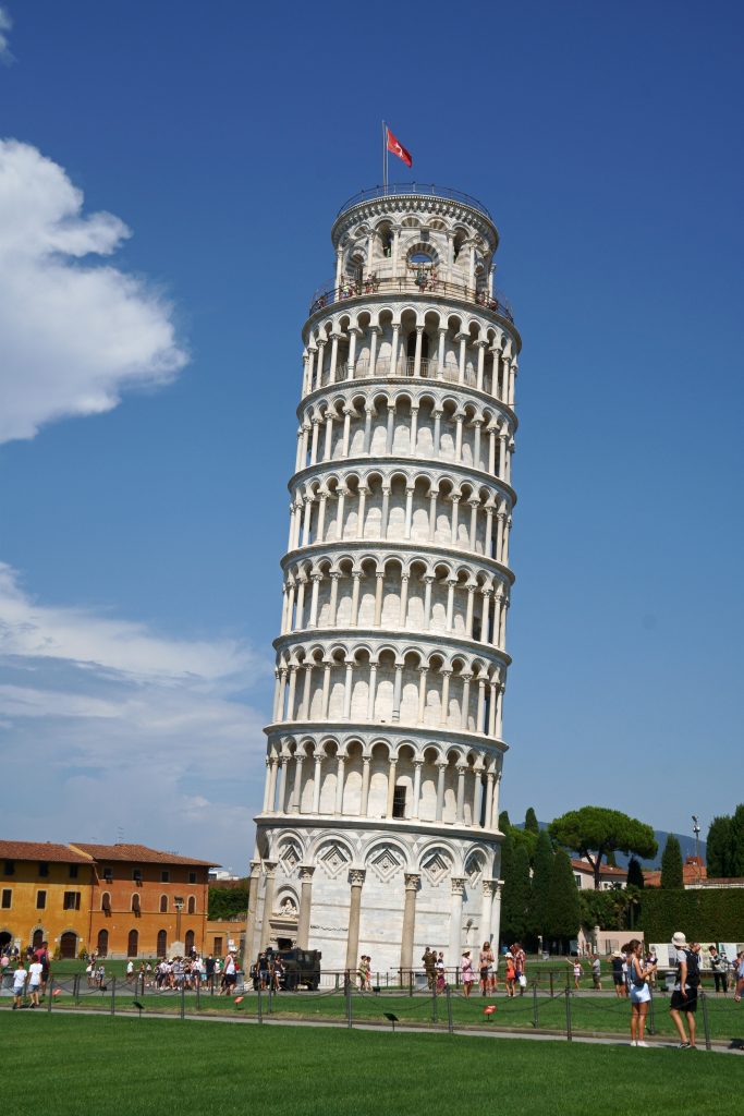 Der Morgen verläuft wie gewohnt nach Schema F: Auf den Wohnmobilservice – Wasserauffüllen und Ablassen des Grauwassers – verzichten wir diesmal allerdings, da wir befürchten, beim Rangieren mit unserem Mobil aufzusitzen. Unser erstes Ziel des Tages ist das rund 30 Kilometer entfernte Volterra. Geparkt wird unterhalb der Stadt – der Parkplatz kostet 12,20 €. Andere, günstigere Stellplätze gibt es zwar, liegen aber noch weiter unterhalb, sodass man von dort einen ziemlich steilen Anstieg und gefühlt tausend Stufen zu bewältigen hätte. Volterra bietet einige römische Ausgrabungen, die uns allerdings nicht mehr sonderlich beeindrucken – nach unserem letzten Italienurlaub im Fasching mit Stationen in Rom, Neapel und Pompeji haben wir diesbezüglich schon deutlich Spektakuläreres gesehen. Der Rest der Stadt ähnelt den anderen toskanischen Hügelstädten – nur eben mit drei Türmen weniger als San Gimignano. Nach rund 90 Minuten haben wir das meiste gesehen und machen uns auf den Weg nach Pisa. Je näher wir der Stadt kommen, desto städtischer wird es. Kurz vor dem Campingplatz stoßen wir erfreulicherweise auf einen Lidl, der es uns endlich ermöglicht, unsere Vorräte aufzufüllen. In den letzten Tagen hatten wir immer wieder auf Supermärkte gehofft – mussten aber mangels Alternativen auf die oft überteuerten Minishops bei den Campingplätzen zurückgreifen. In dieser Hinsicht unterscheidet sich Italien deutlich von Deutschland: Die Infrastruktur für Wohnmobilreisende ist hier deutlich dünner. Der Campingplatz in Pisa liegt zentral und macht insgesamt einen sehr gepflegten Eindruck. Die Hauptattraktion – der weltberühmte Schiefe Turm – ist in etwa 15 Minuten zu Fuß erreichbar. Wir ruhen uns kurz aus und brechen dann gegen 14:45 Uhr zur Besichtigung auf. Der Weg dorthin ist alles andere als malerisch: Es geht durch eher schmuddelige Straßen und eine laute Unterführung. Nach einem letzten Rechtsknick stehen wir plötzlich auf der Piazza dei Miracoli, dem Platz der Wunder. Hier ist auf einmal alles sauber, gepflegt und perfekt inszeniert – abgesehen von den üblichen Souvenirständen am Eingang. Der Schiefe Turm ist tatsächlich – nun ja – wirklich schief und durchaus beeindruckend. Auf das Hinaufsteigen verzichten wir: Der Preis von 18 € pro Person in Kombination mit einer Wartezeit von etwa drei Stunden schreckt uns ab. Fast alle Besucher versuchen sich an dem typischen Fotomotiv – mit ausgestreckten Armen, als ob sie den Turm stützen. Wir widerstehen dem Klischee. Wirklich bemerkenswert ist auch der angrenzende Dom, den man – erstaunlicherweise – mit einem kostenlosen Ticket besichtigen darf. Ursprünglich dachten wir, man könne ihn nur von außen sehen. Danach spazieren wir noch ein Stück in Richtung Arno. Anfangs säumen schöne Häuser und zahlreiche Restaurants den Weg, doch dieser positive Eindruck verflüchtigt sich schnell – das Stadtbild wird zunehmend lieblos. Mit schweren Beinen erreichen wir schließlich wieder unseren Campingplatz.