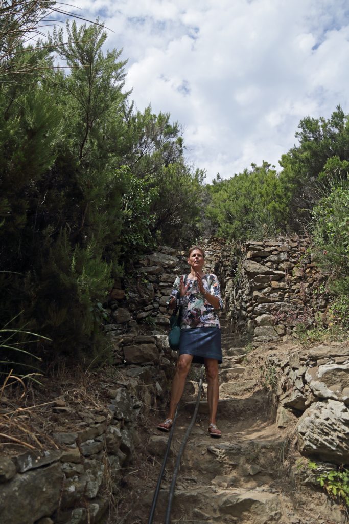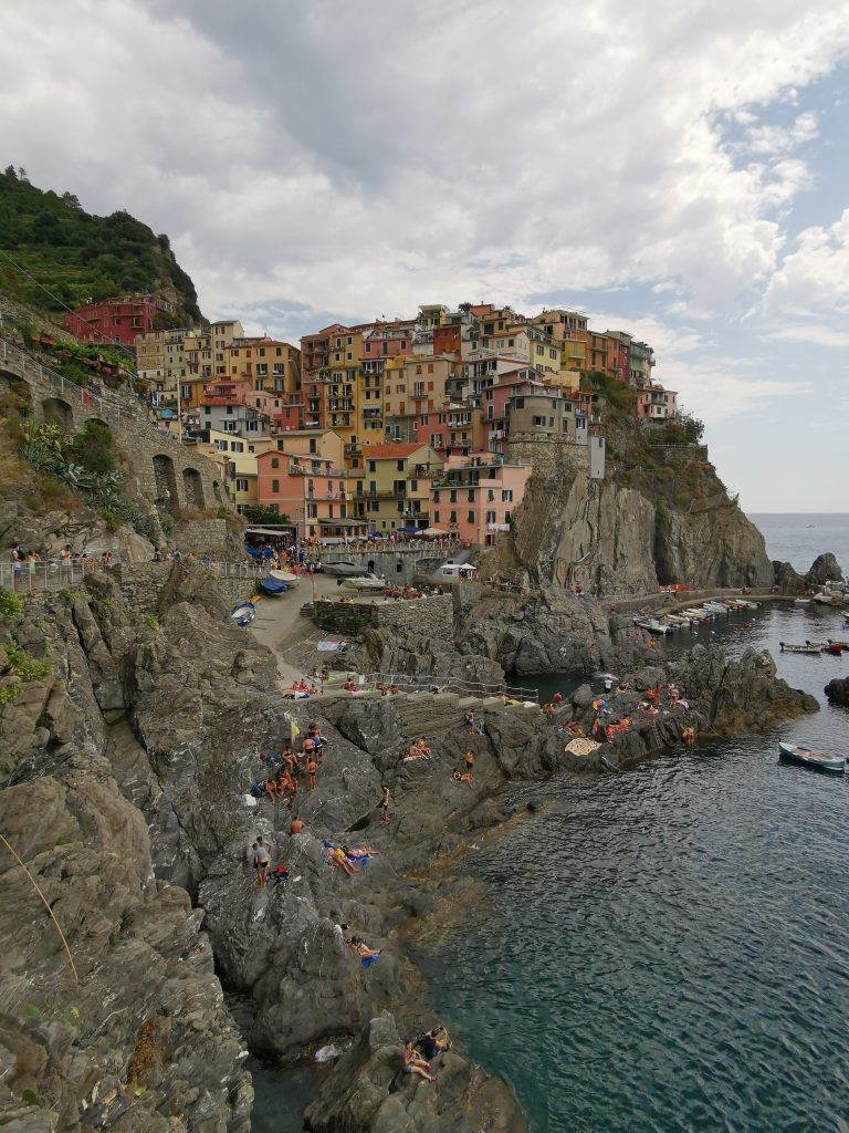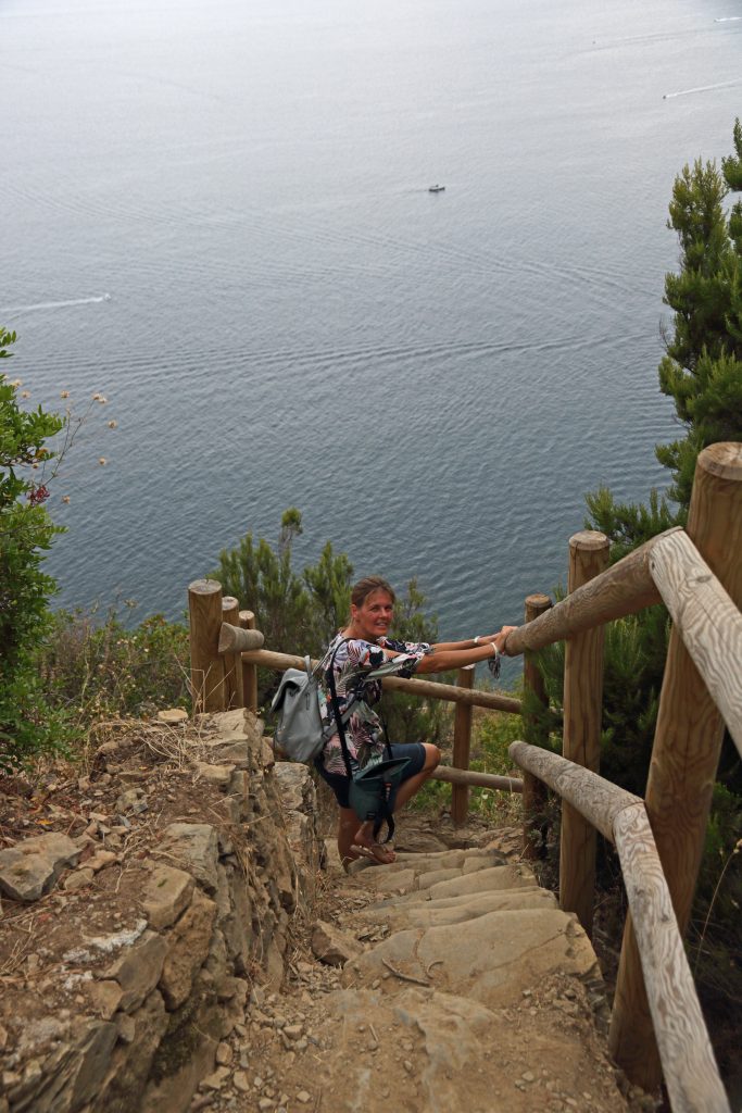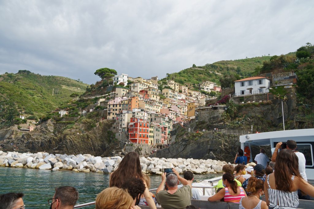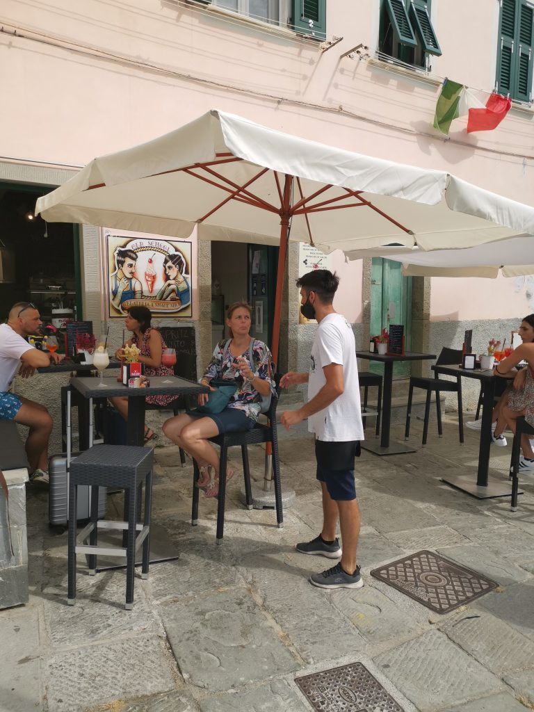 Der Morgen beginnt wie immer nach Schema F: Aufstehen, Duschen, Kaffee. Dann machen wir uns auf zum Hafen von Levanto: Heute wollen wir endlich die Cinque Terre vom Wasser aus sehen. Obwohl wir früh dran sind, sind wir nicht die Ersten. Schnell kaufen wir unsere Tickets und reihen uns in die – zum Glück noch überschaubare – Warteschlange ein. Pünktlich um 09:15 Uhr legt das Boot ab. Wir stürmen nach oben, um uns auf der linken Seite einen guten Steh- oder Sitzplatz zu sichern – in Erwartung großartiger Fotomotive. Doch kurz darauf macht uns der Himmel einen Strich durch die Rechnung: Es beginnt zu tröpfeln. Das Licht ist schlecht, die Luft diesig, und so wirken die berühmten bunten Dörfer eher trüb als traumhaft. Wir fragen uns, ob selbst bei Sonnenschein um diese Uhrzeit wirklich Kategorie 1-Fotos möglich gewesen wären. Das Boot fährt nacheinander Monterosso, Vernazza und Corniglia ohne Halt an, legt kurz in Manarola an, und wir steigen schließlich in Riomaggiore aus. Unser Eindruck vor Ort: Die alte Bausubstanz ist größtenteils in schlechtem Zustand. Das touristische Angebot wirkt vergleichbar mit dem Bereich vor den Bootsanlegestellen am Königssee in Berchtesgaden. Corona-Maßnahmen? Eher sporadisch: Einige tragen Masken, an Abstand hält kaum jemand. Die ersten 150 Meter des Ortes gehören der Touristenmeute. Je weiter man aufsteigt, desto ruhiger wird es – was unserem Ziel entspricht: So schnell es geht, raus aus dem Trubel. Nach einigen Minuten, bereits leicht schnaufend und transpirierend, erreichen wir ein kleines, cooles Café: zwei Shakes, ein Cappuccino und ein Bruschetta mit Tomaten und Pesto. Die zwei bärtigen Männer, die uns bedienen, sind auffallend freundlich und sympathisch. Wir fühlen uns so wohl, dass wir prompt noch einmal bestellen. Unsere Fragen zum Wanderweg zurück nach Manarola können sie uns leider nicht zufriedenstellend beantworten – also entscheiden wir selbst: Braucht man ein Ticket? – Nein. Sind die Schuhe mit Glitzersternchen geeignet? – Nicht ideal, aber angesichts einer in Aussicht gestellten Neuanschaffung vertretbar. Ist der Weg steil? – Ja. So machen wir uns auf den Weg. Der Weg ist tatsächlich steil, aber unser Ehrgeiz – und vielleicht auch ein gewisser urbayrischer Stolz – spornt uns an. Stufe für Stufe geht es nach oben. Wir legen viele kleine Pausen ein, geben jedem Gegenverkehr höflich den Vortritt, auch um zu kaschieren, dass uns die Puste ausgeht. Unsere Transpiration ist jedoch kaum zu verbergen. Oben angekommen, geht’s bergab – was zwar weniger anstrengend für den Kreislauf, aber belastend für die Gelenke ist – incl. Rutschgefahr. Doch wir schaffen es ohne Verletzungen oder Herzinfarkt zurück nach Manarola. Zur Belohnung gibt’s ein weiteres Eis und einen „Frappé“. Die Touristenmassen sind wieder da, also entscheiden wir uns, nicht bis zum nächsten Boot zu warten, sondern die italienische Bahn zu nutzen. Der Fahrplan ist einfach, die Tickets bekommen wir problemlos am Automaten – nur beim Entwerten brauchen wir Hilfe, da die Tickets für den Automaten zu kurz sind. Um 14:36 Uhr fährt unser Zug, und keine 20 Minuten später sind wir wieder zurück in Levanto. Noch ein kurzer Einkaufsstopp: eine Megapackung Dolcis, frisches Brot, Olivenöl und Pesto für zu Hause. So, wie der Tag begonnen hat, endet er auch: nach Schema F.