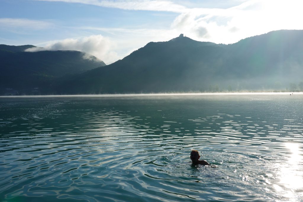 Frühstücken, Badengehen – so beginnt der Tag. Das geplante Vorhaben, mit dem Rad nach Kaltern …